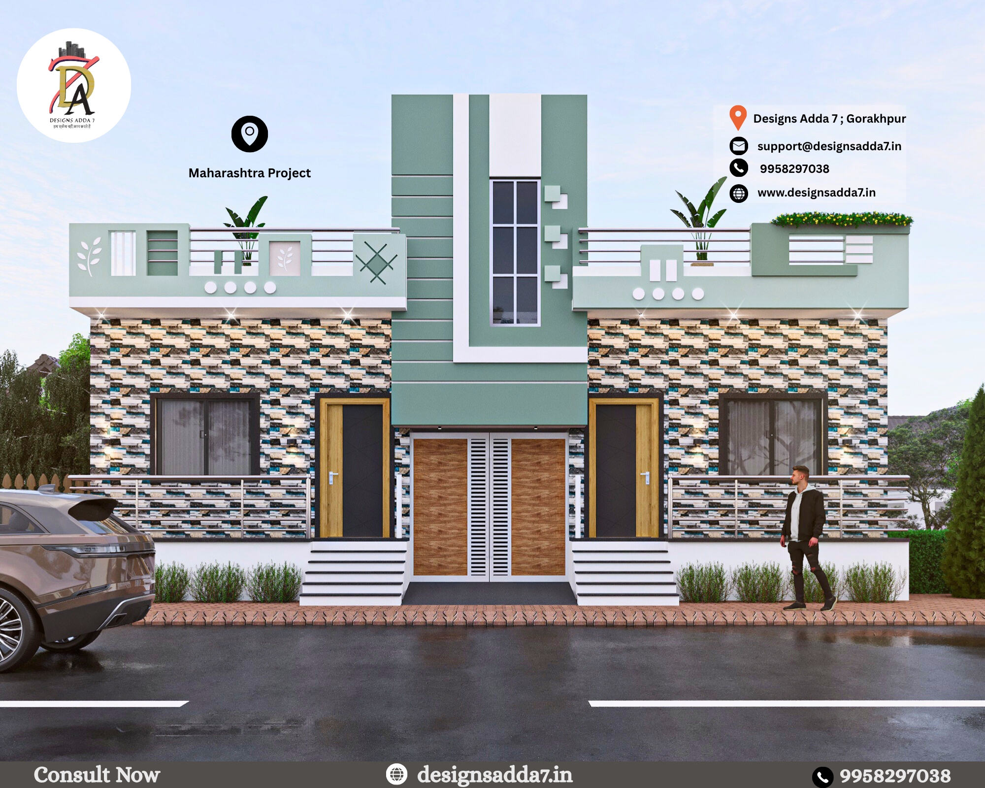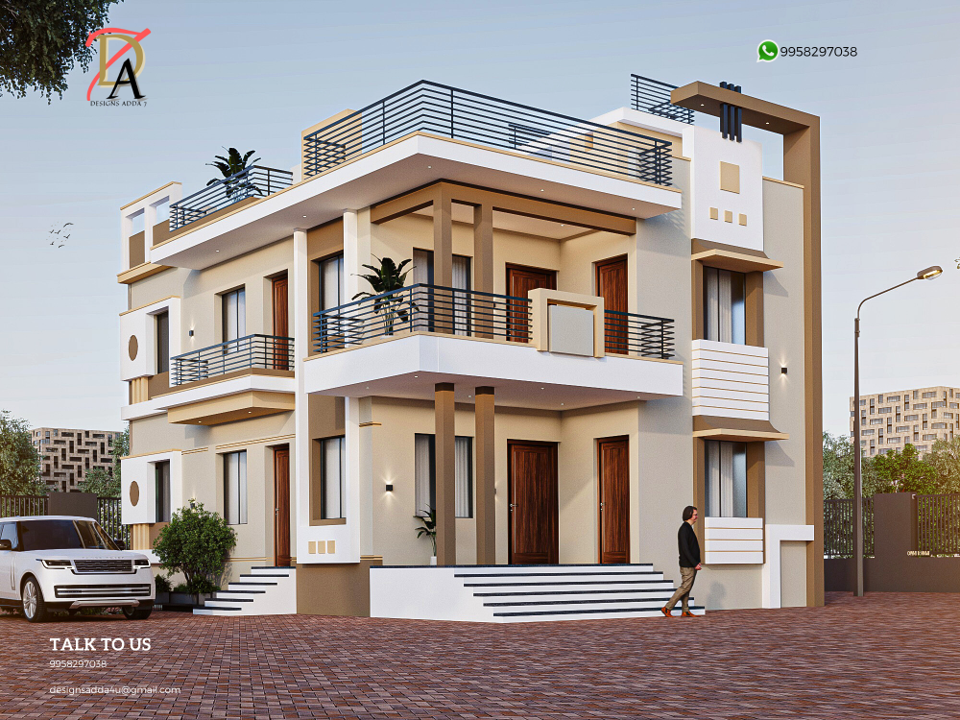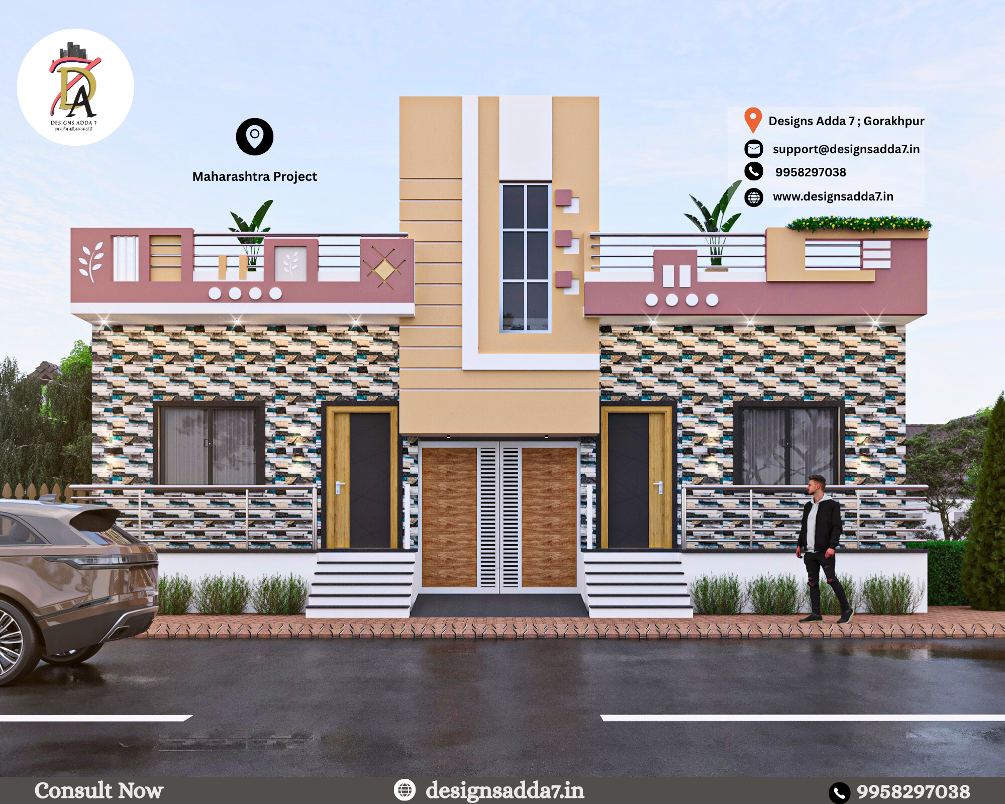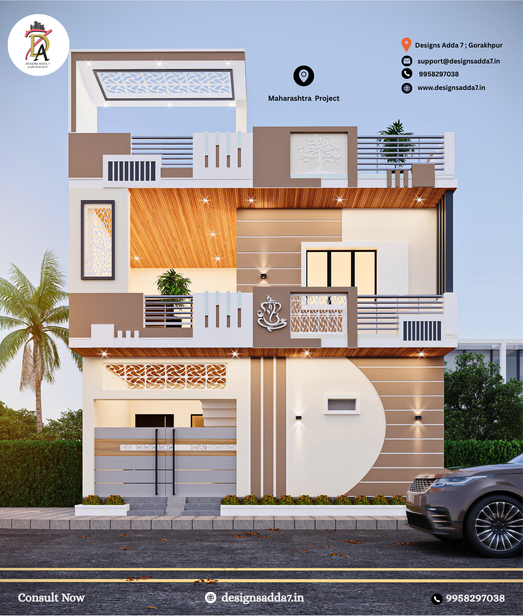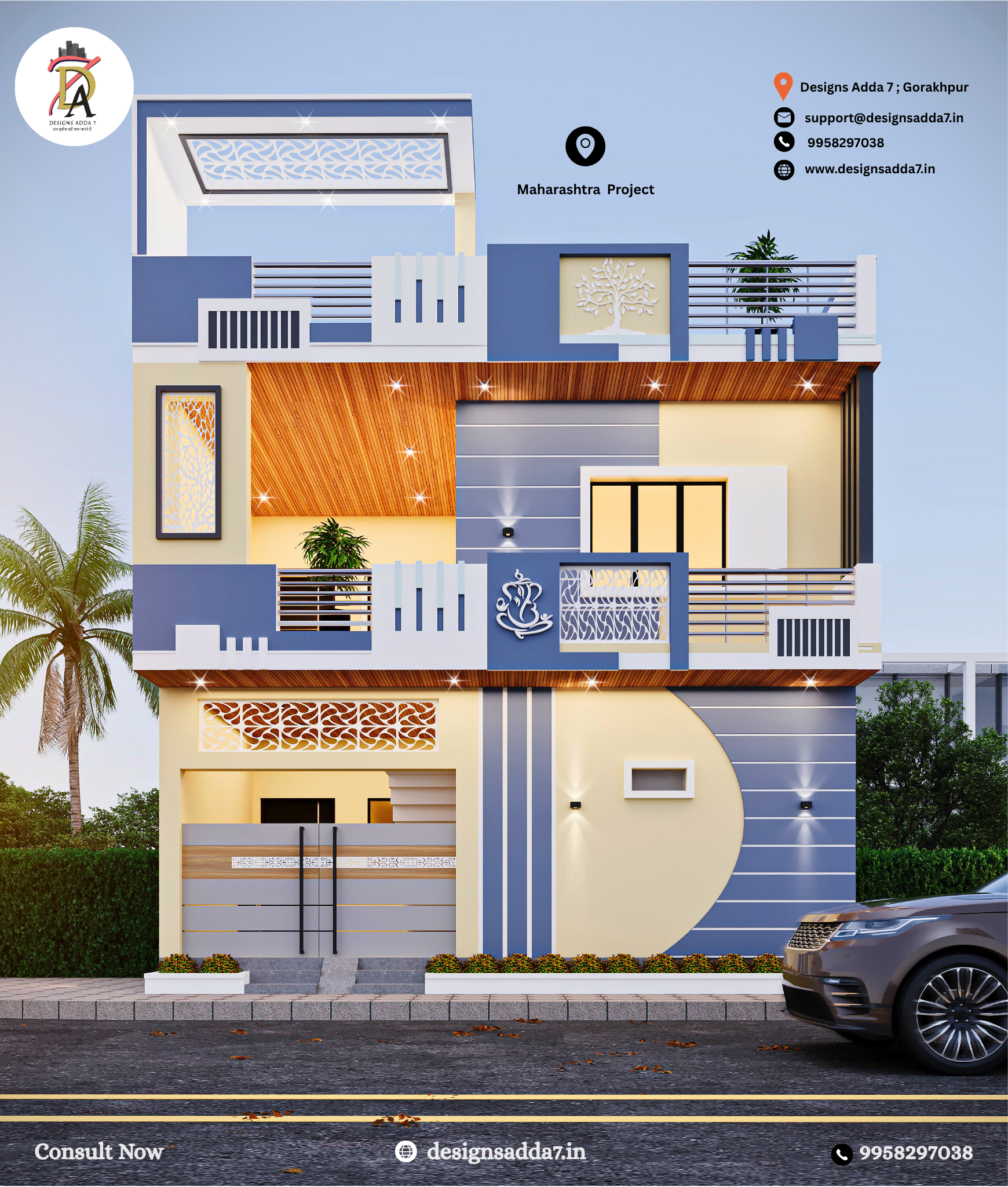 Our Maharashtra G+1 corner elevation is designed to make a bold architectural statement! With modern aesthetics, premium materials, and a balanced composition, this elevation enhances both functionality and visual appeal. The corner design maximizes space utilization and street presence, ensuring a standout look that is easy to construct yet stunning in execution.
