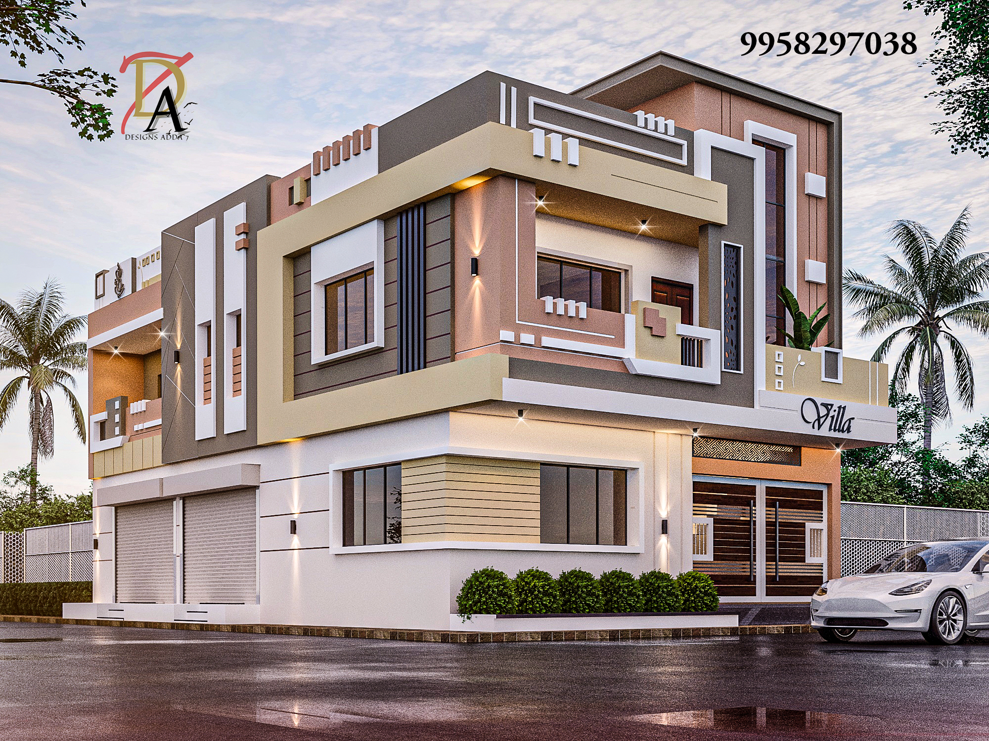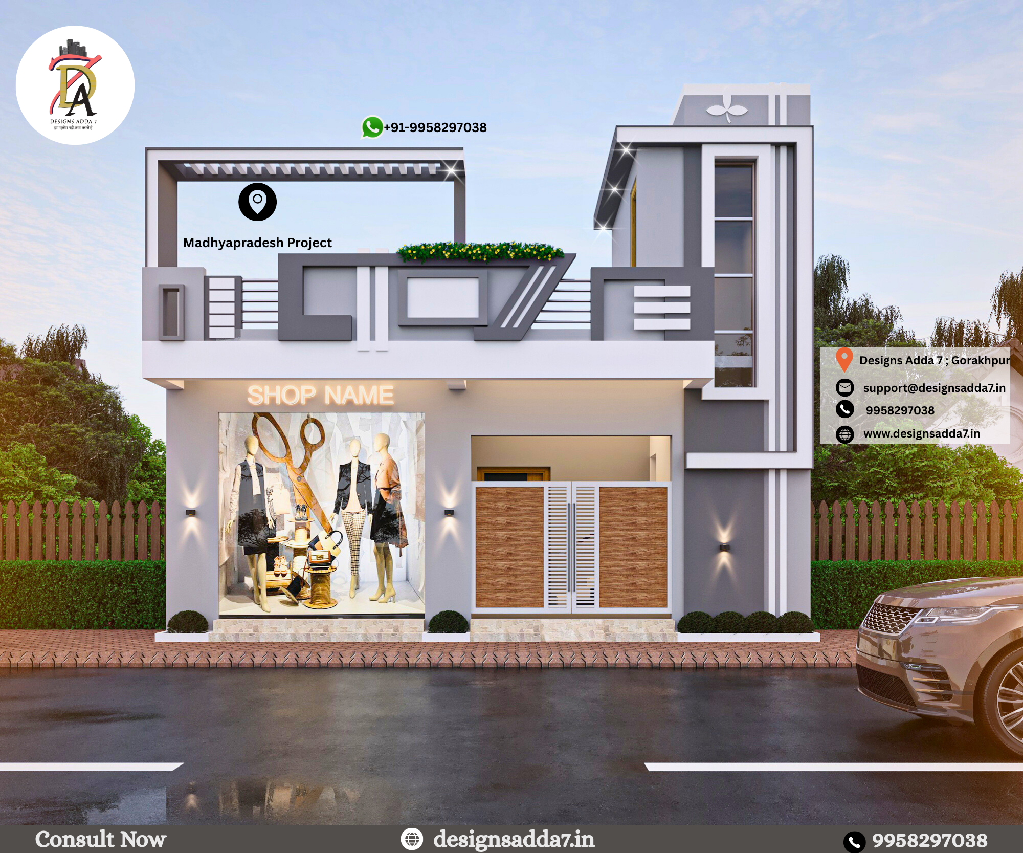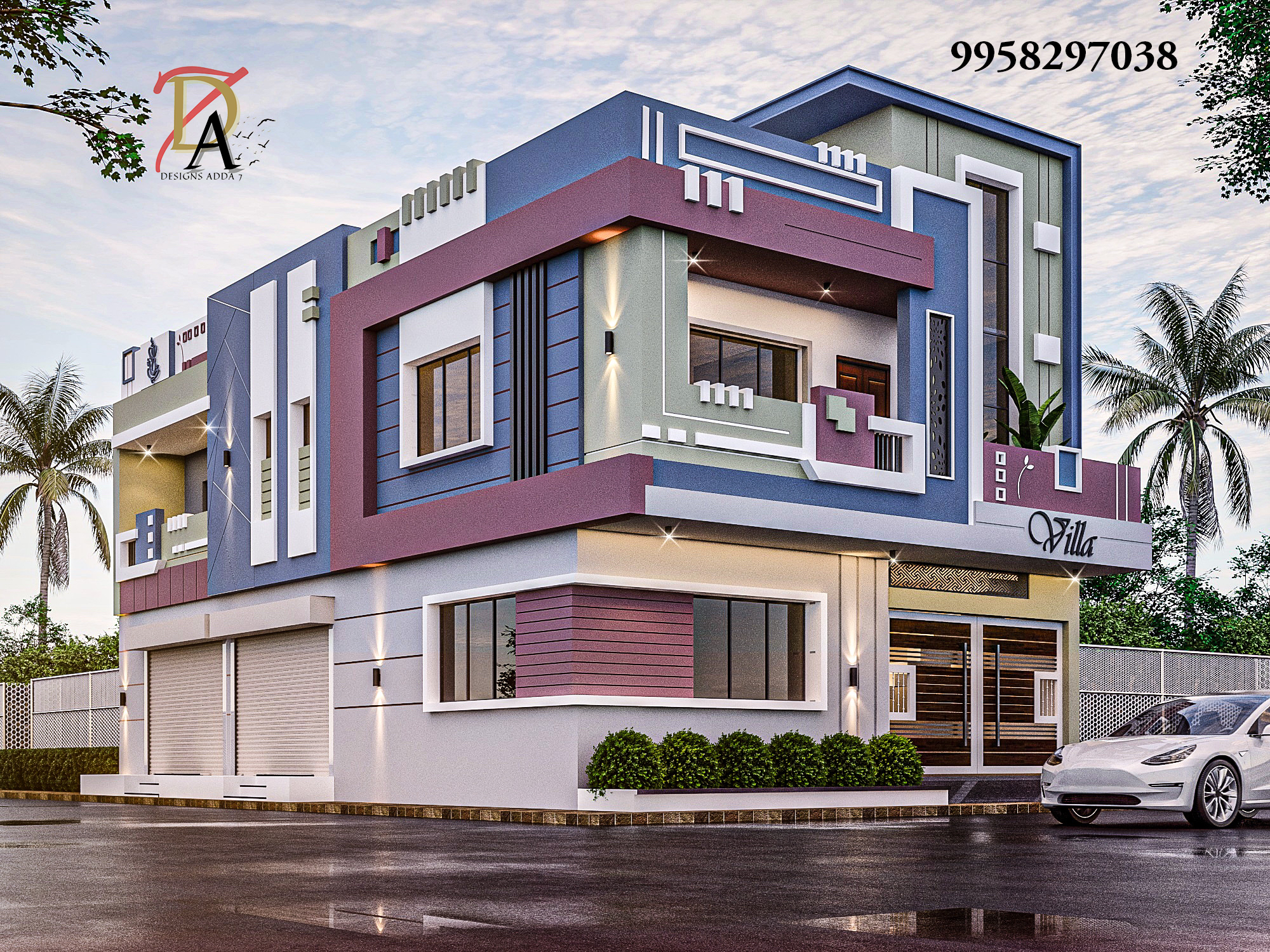 Our Kota corner elevation project seamlessly integrates three commercial shops with a striking color combination that enhances visual appeal. Designed with simplicity in mind, this elevation ensures effortless construction while maintaining a bold, modern aesthetic. Clean lines, balanced proportions, and thoughtfully selected materials create a functional yet eye-catching commercial space, perfect for business visibility and easy execution.