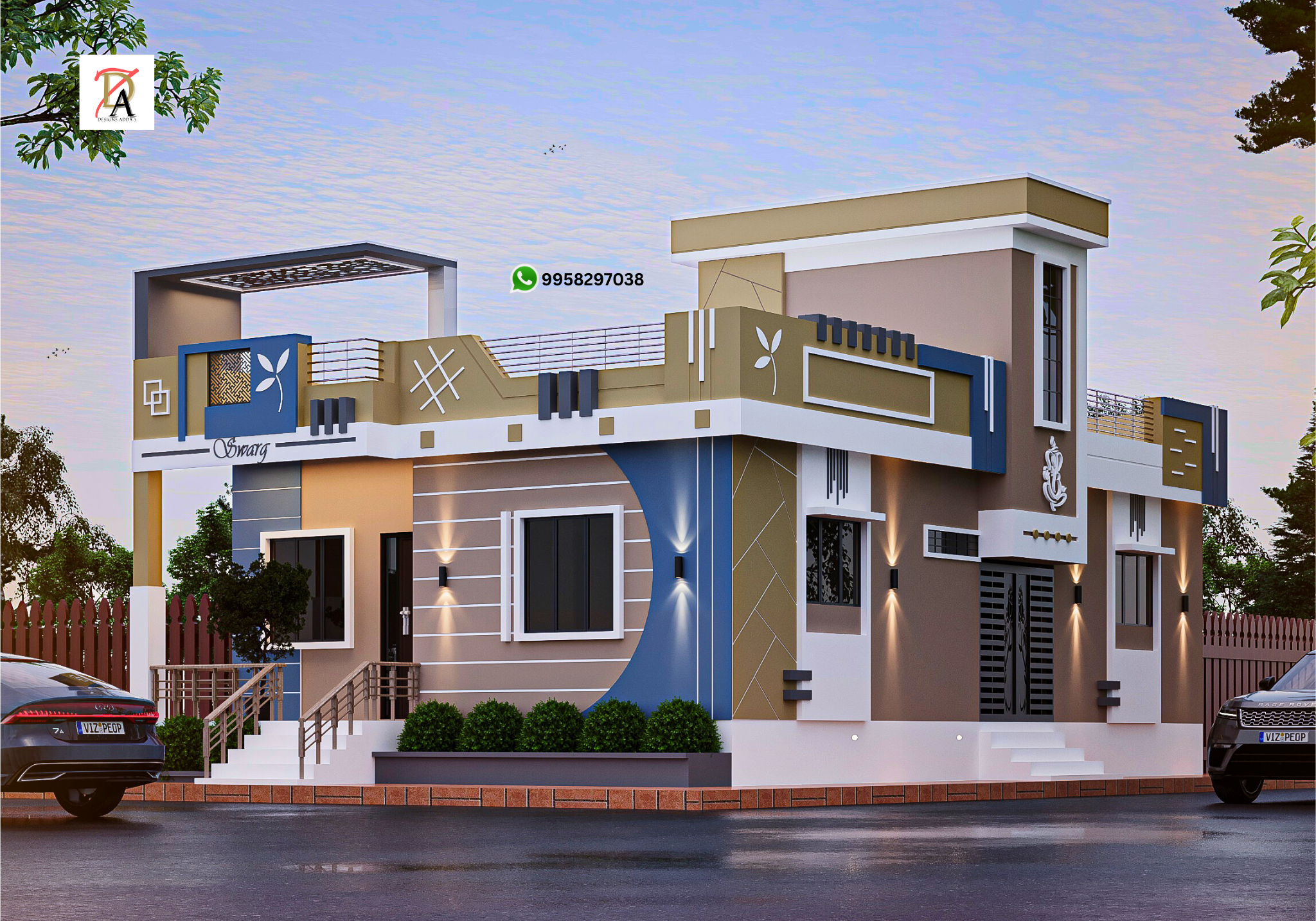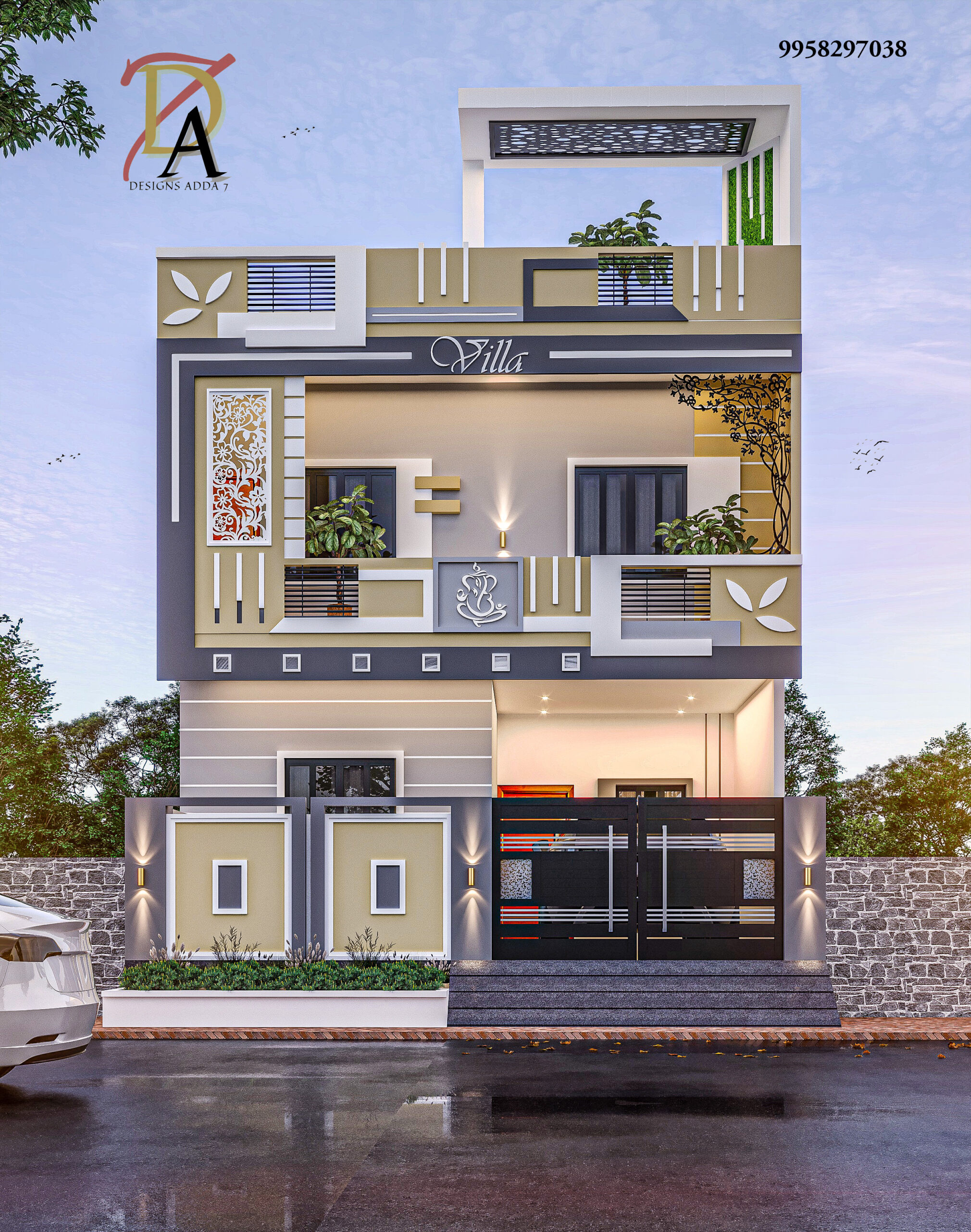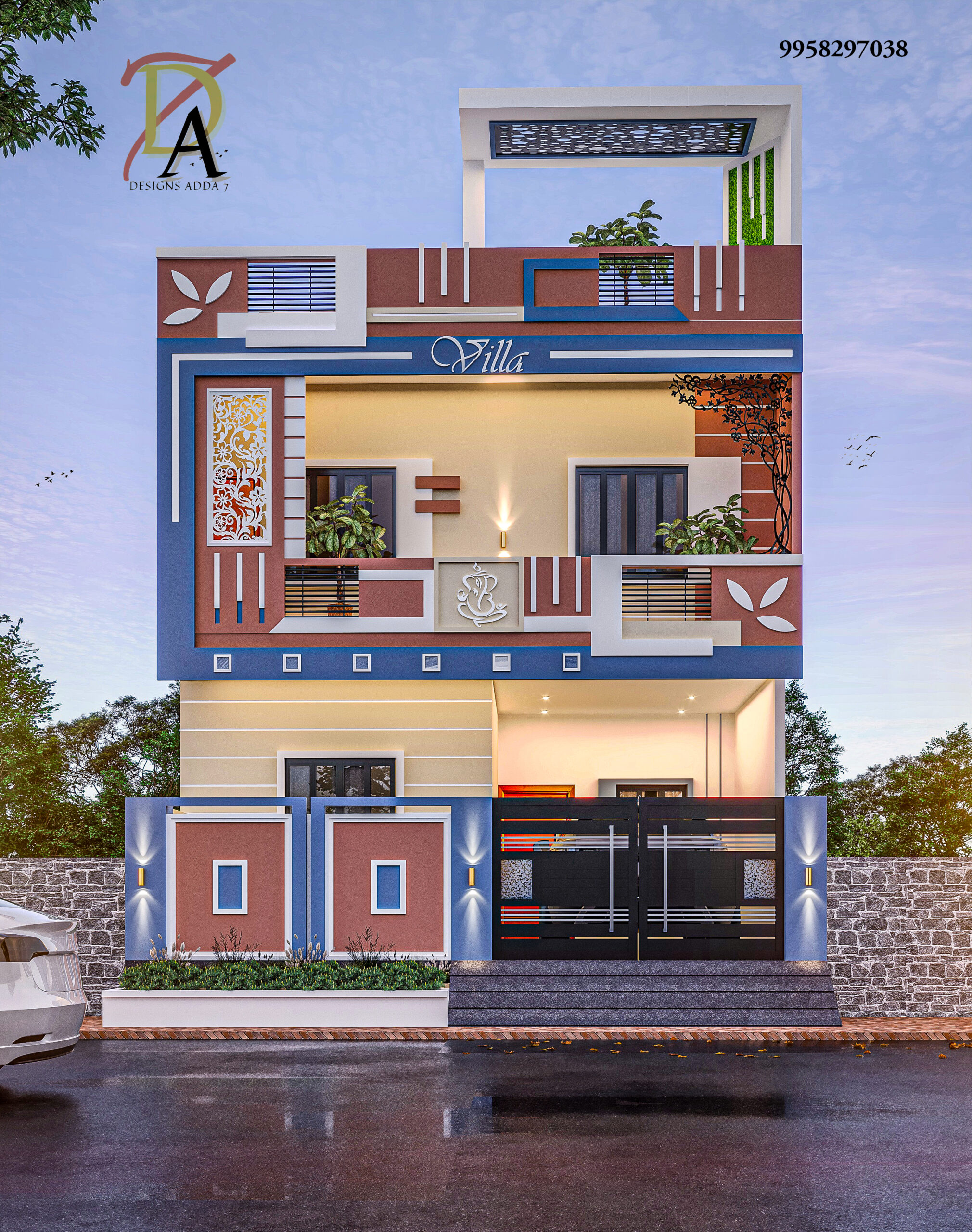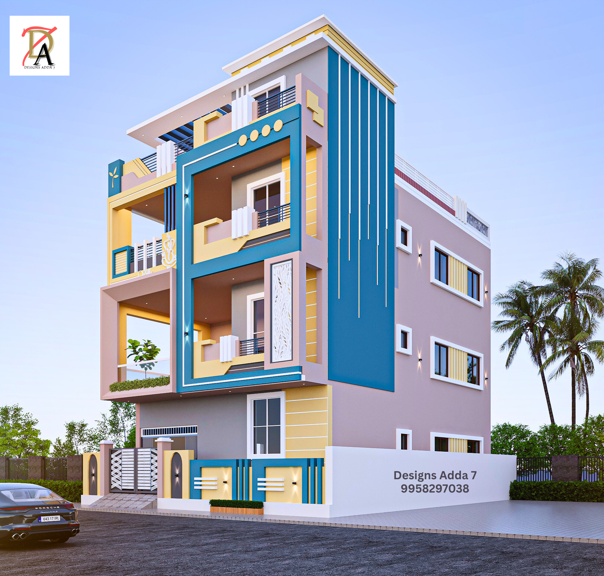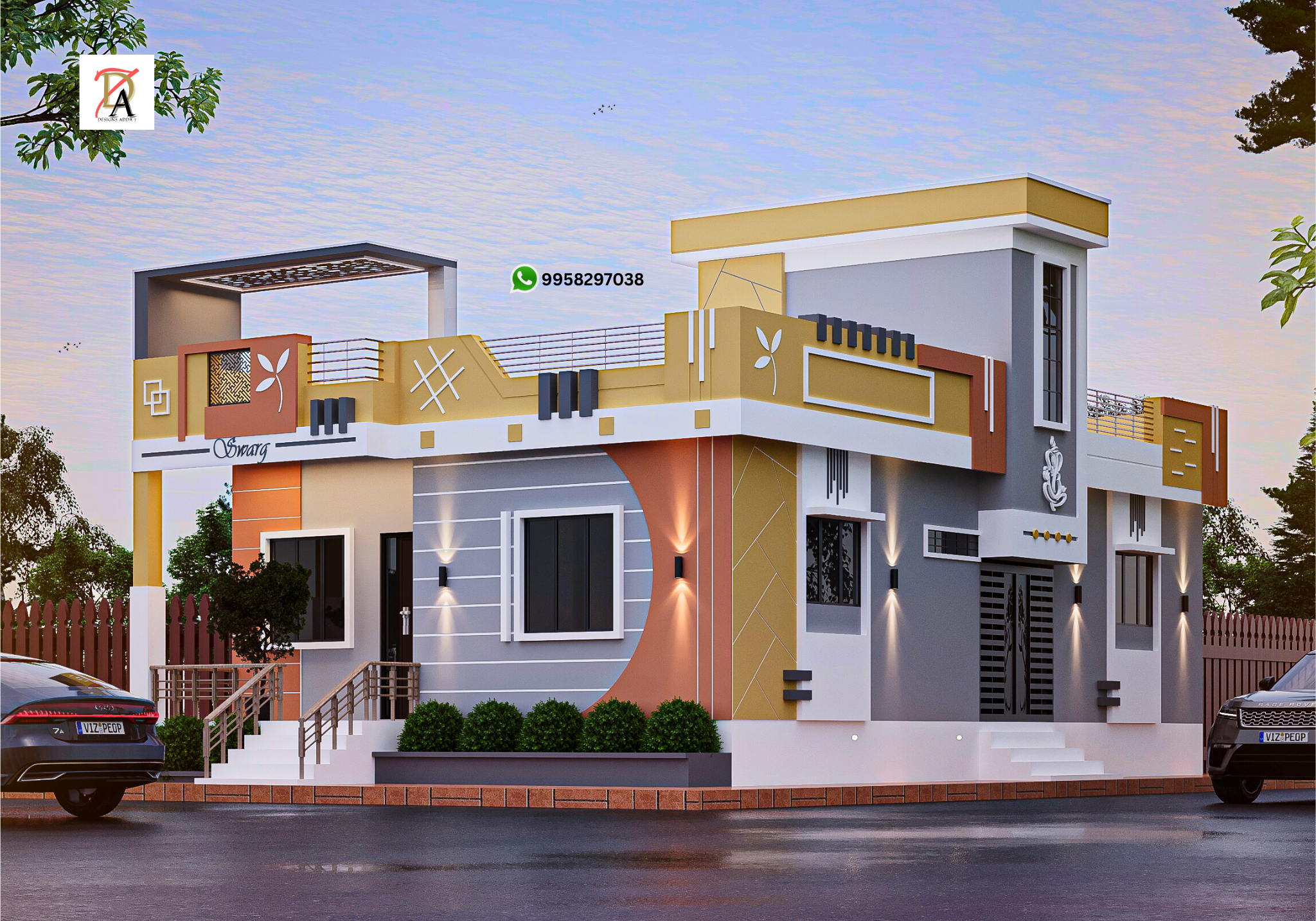 Our Telangana G+2 modern elevation is designed to deliver a stunning visual impact while meeting all client requirements. With a striking color combination, sleek architectural lines, and thoughtfully selected materials, this elevation seamlessly blends aesthetic appeal with functionality. The design ensures elegance, durability, and effortless construction, making it a perfect modern statement.