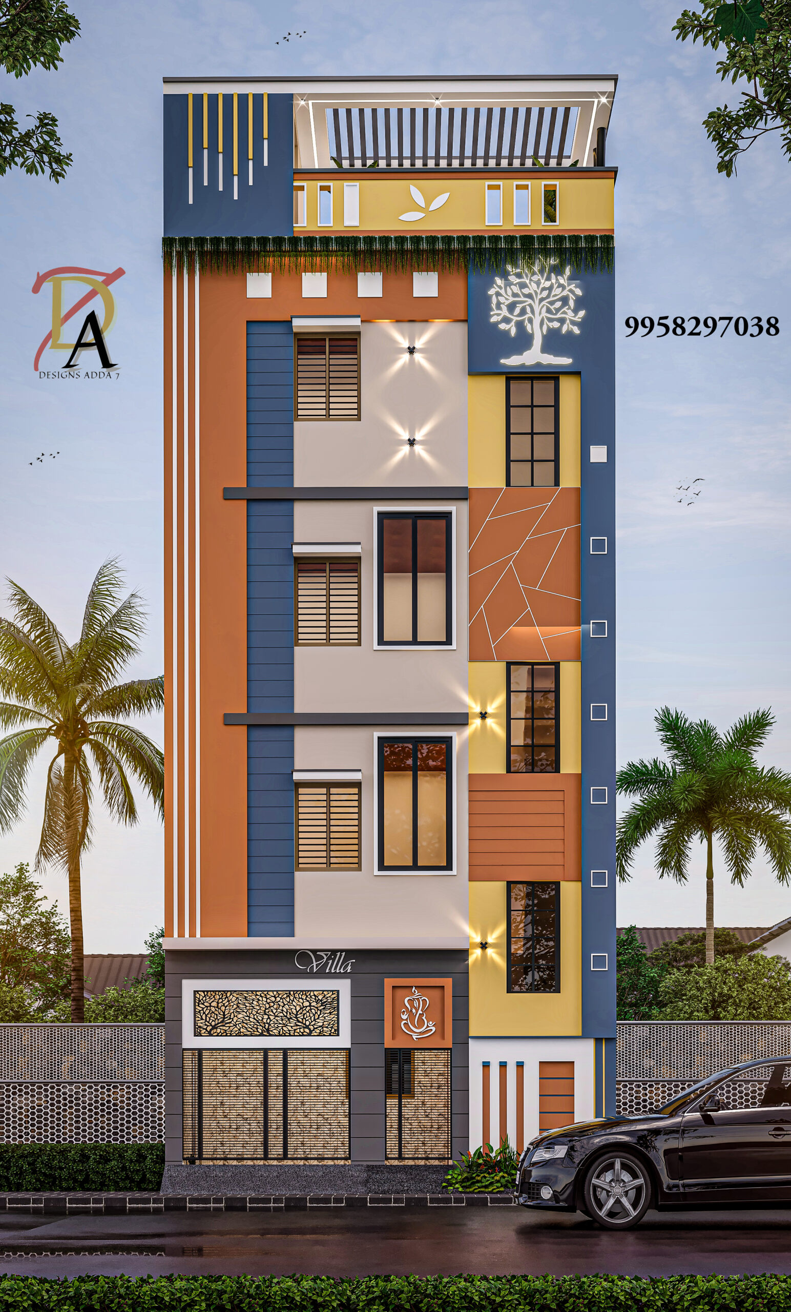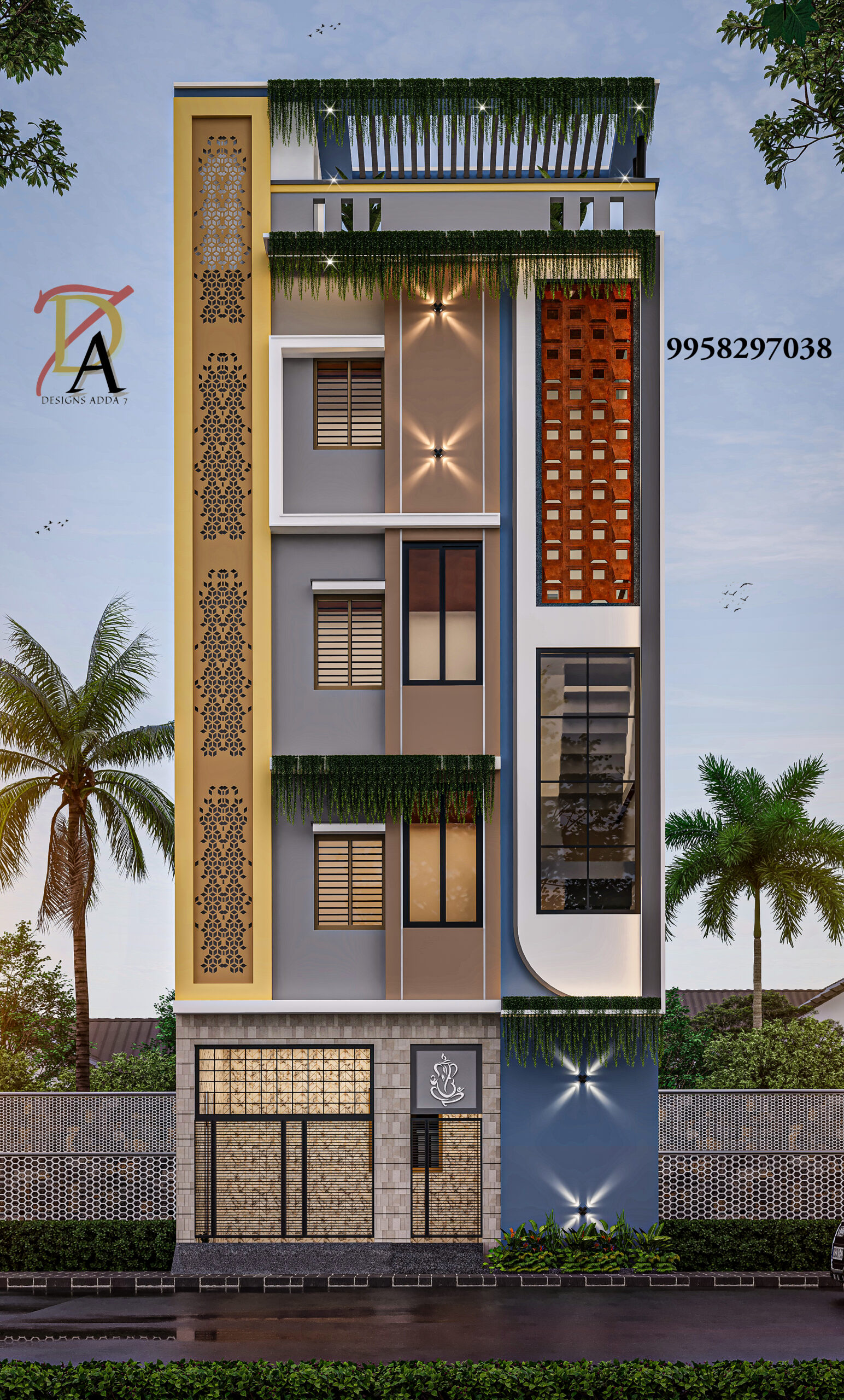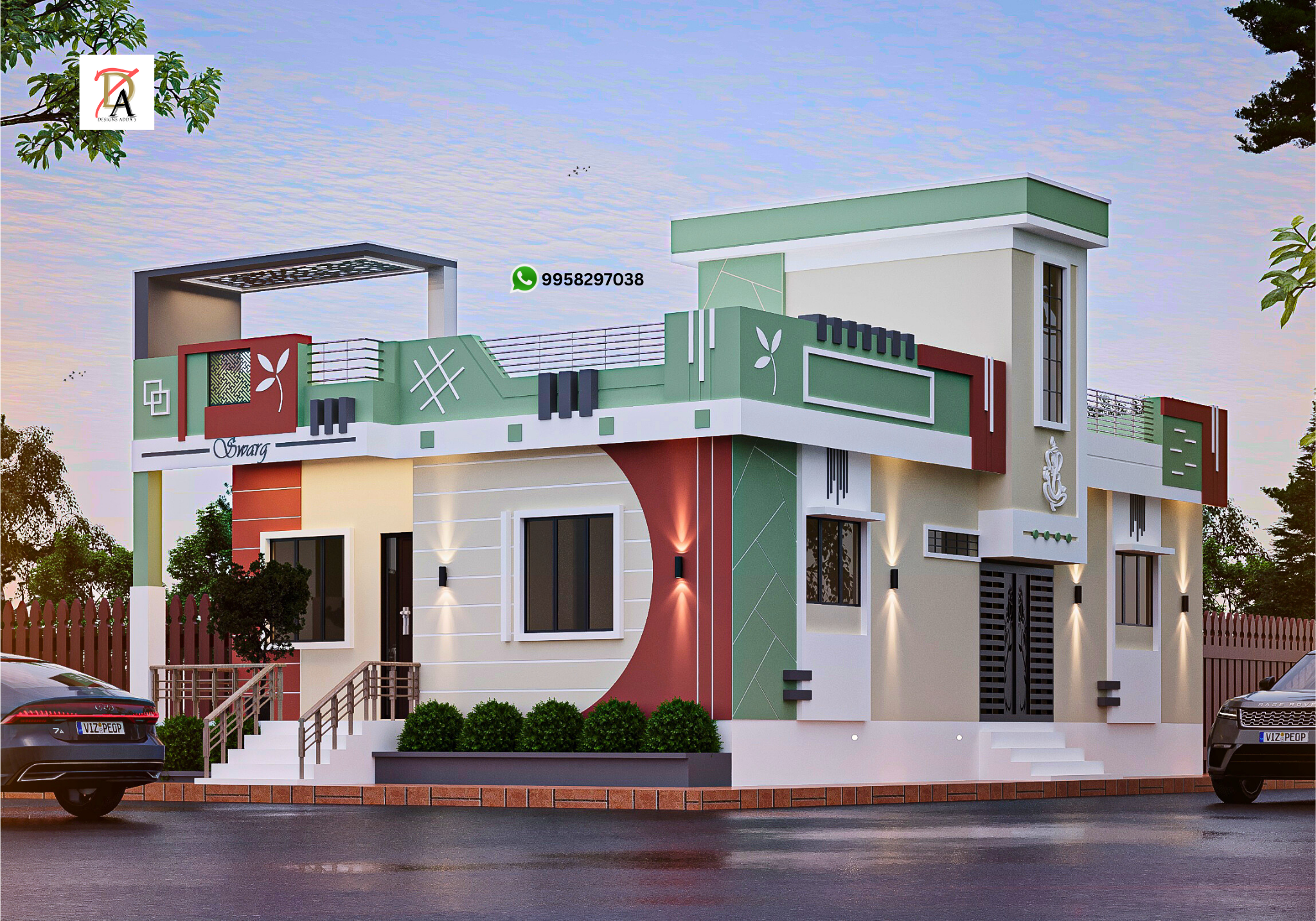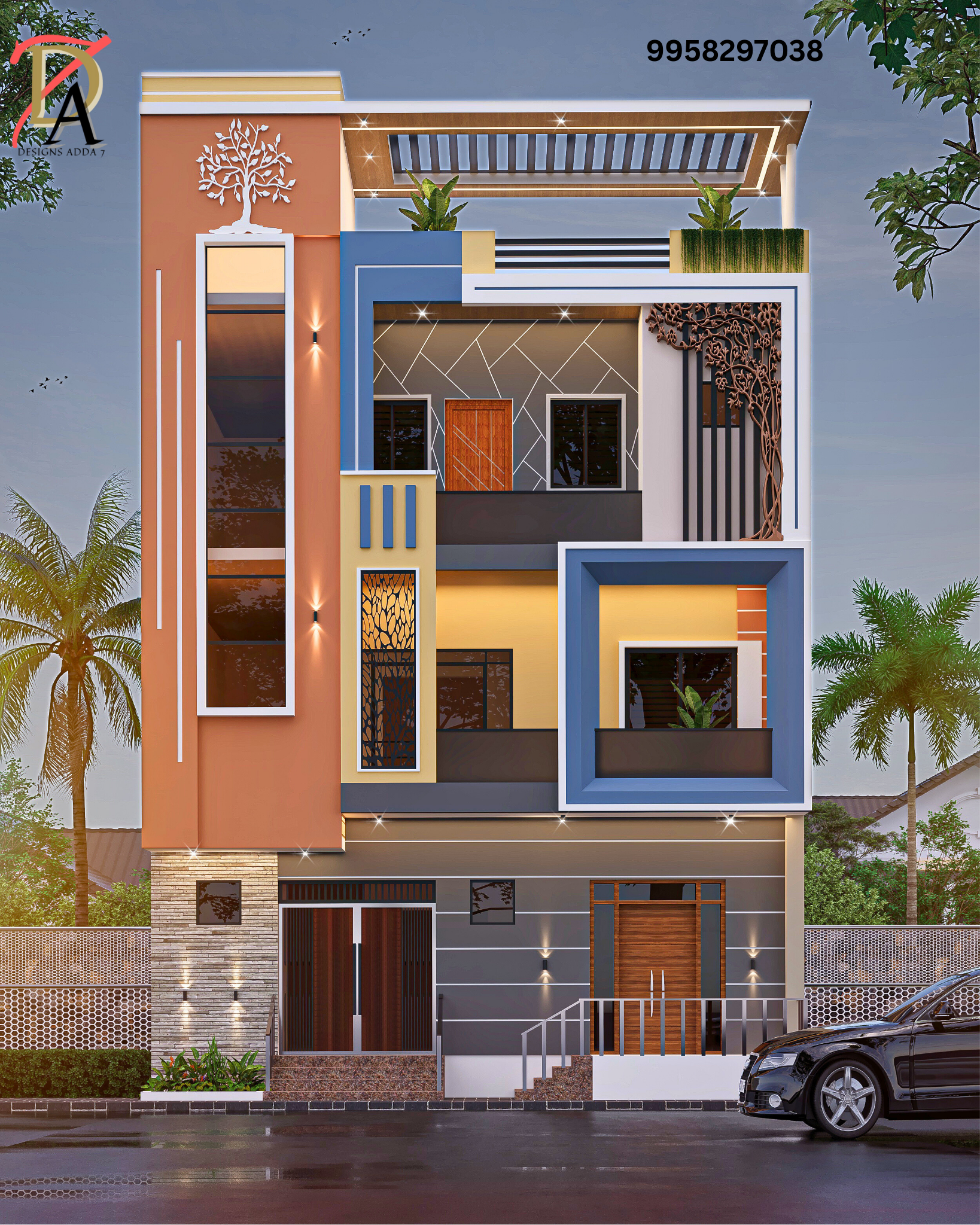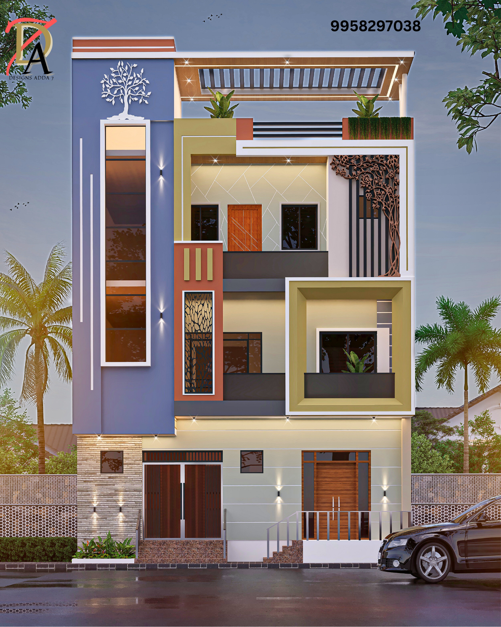 Our Telangana G+2 modern elevation is designed to deliver a stunning visual impact while meeting all client requirements. With a striking color combination, sleek architectural lines, and thoughtfully selected materials, this elevation seamlessly blends aesthetic appeal with functionality. The design ensures elegance, durability, and effortless construction, making it a perfect modern statement.