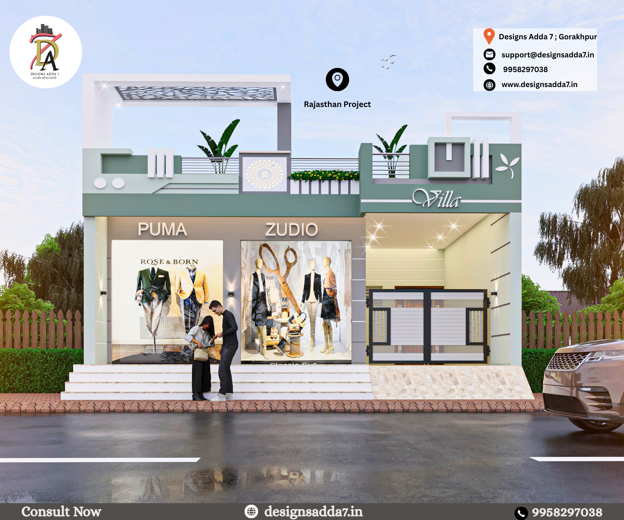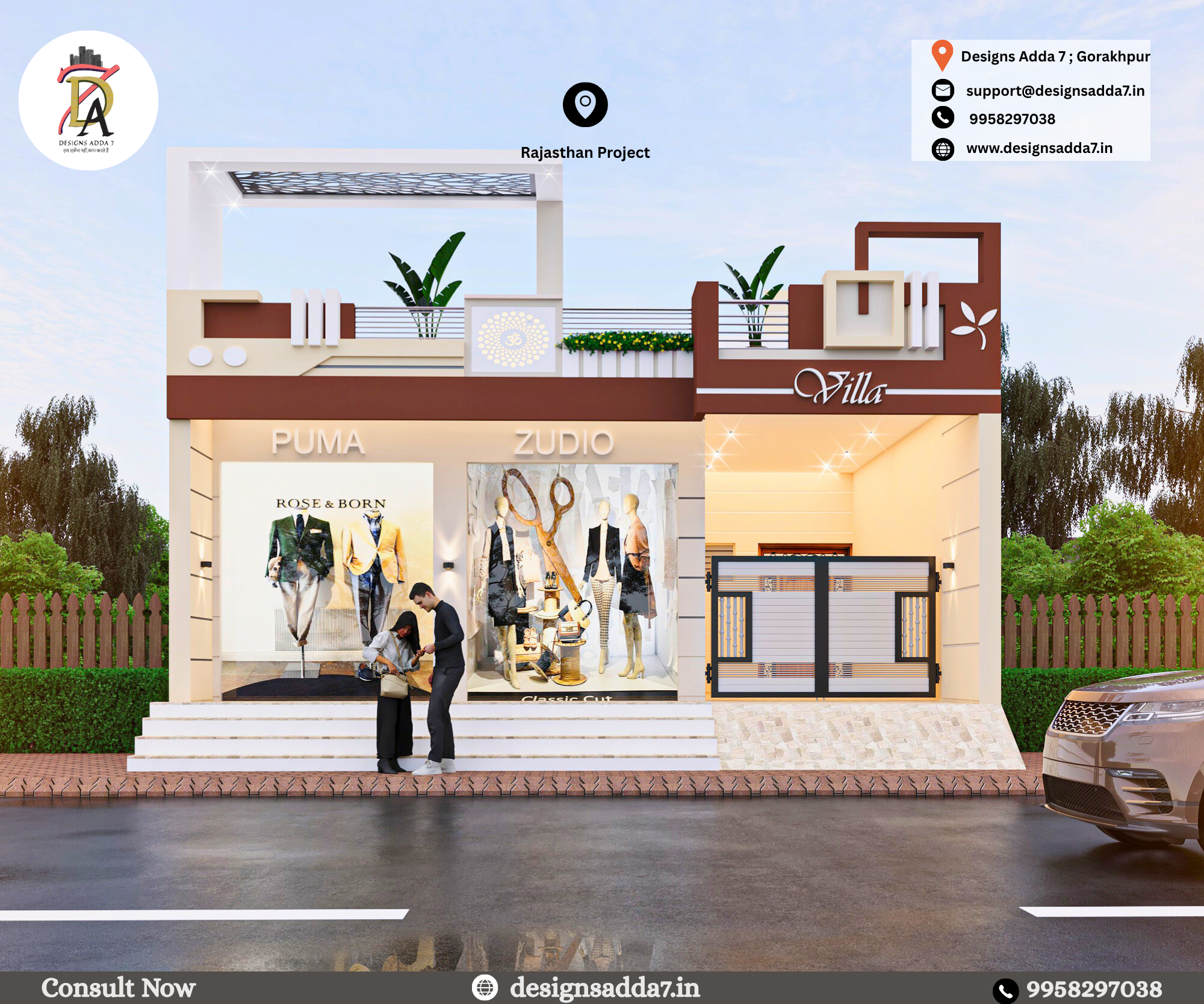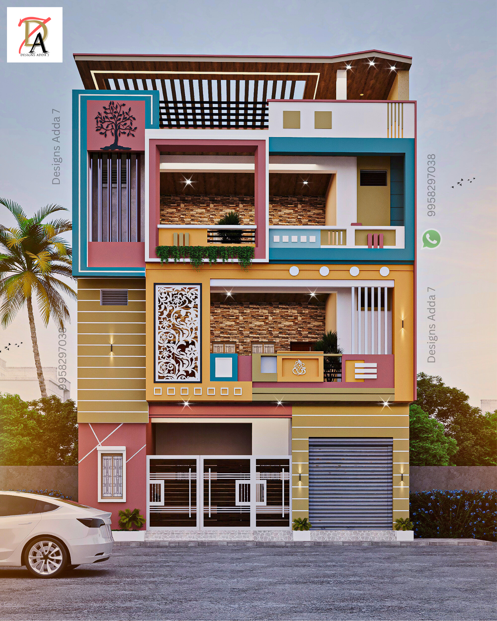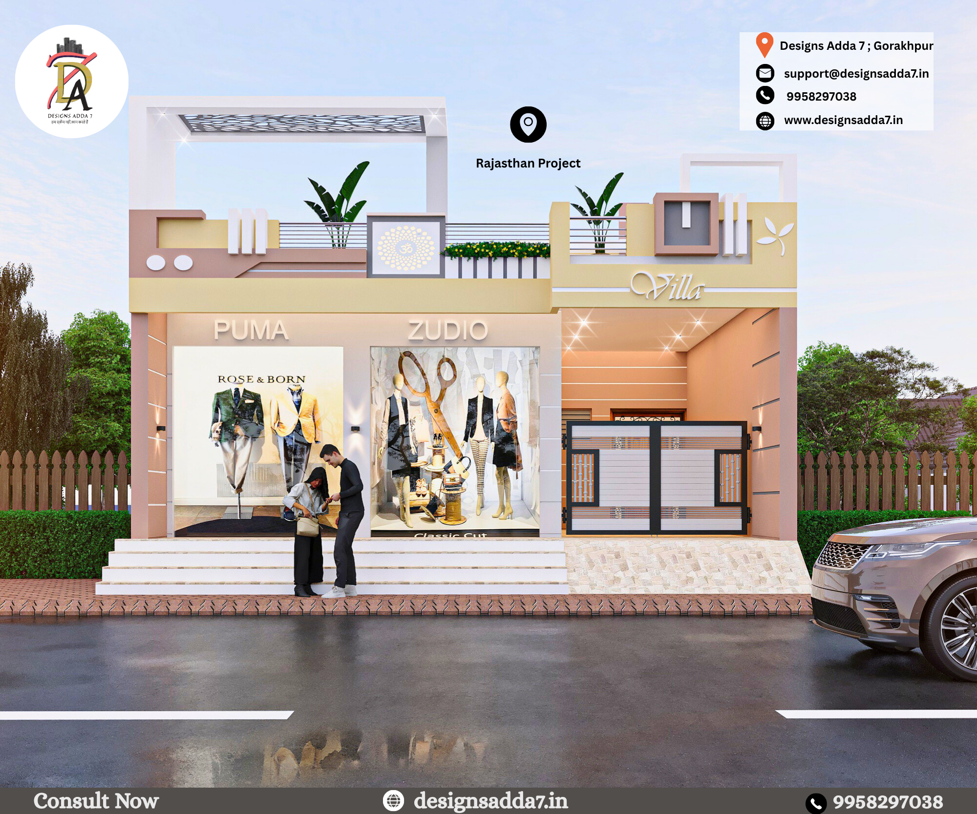 Our Kota corner ground floor elevation project seamlessly integrates three commercial shops with a striking color combination that enhances visual appeal. Designed with simplicity in mind, this elevation ensures effortless construction while maintaining a bold, modern aesthetic. Clean lines, balanced proportions, and thoughtfully selected materials create a functional yet eye-catching commercial space, perfect for business visibility and easy execution.