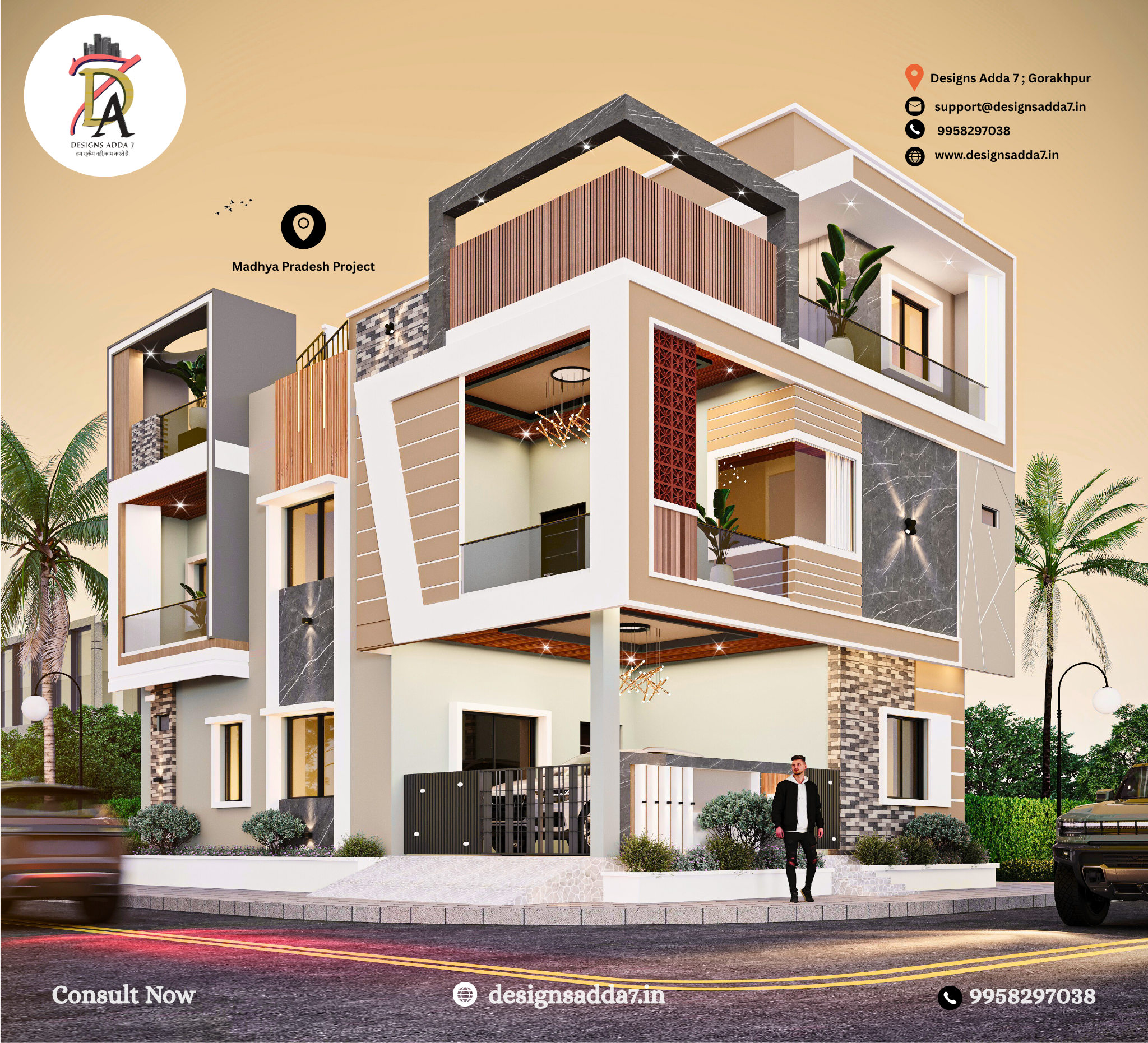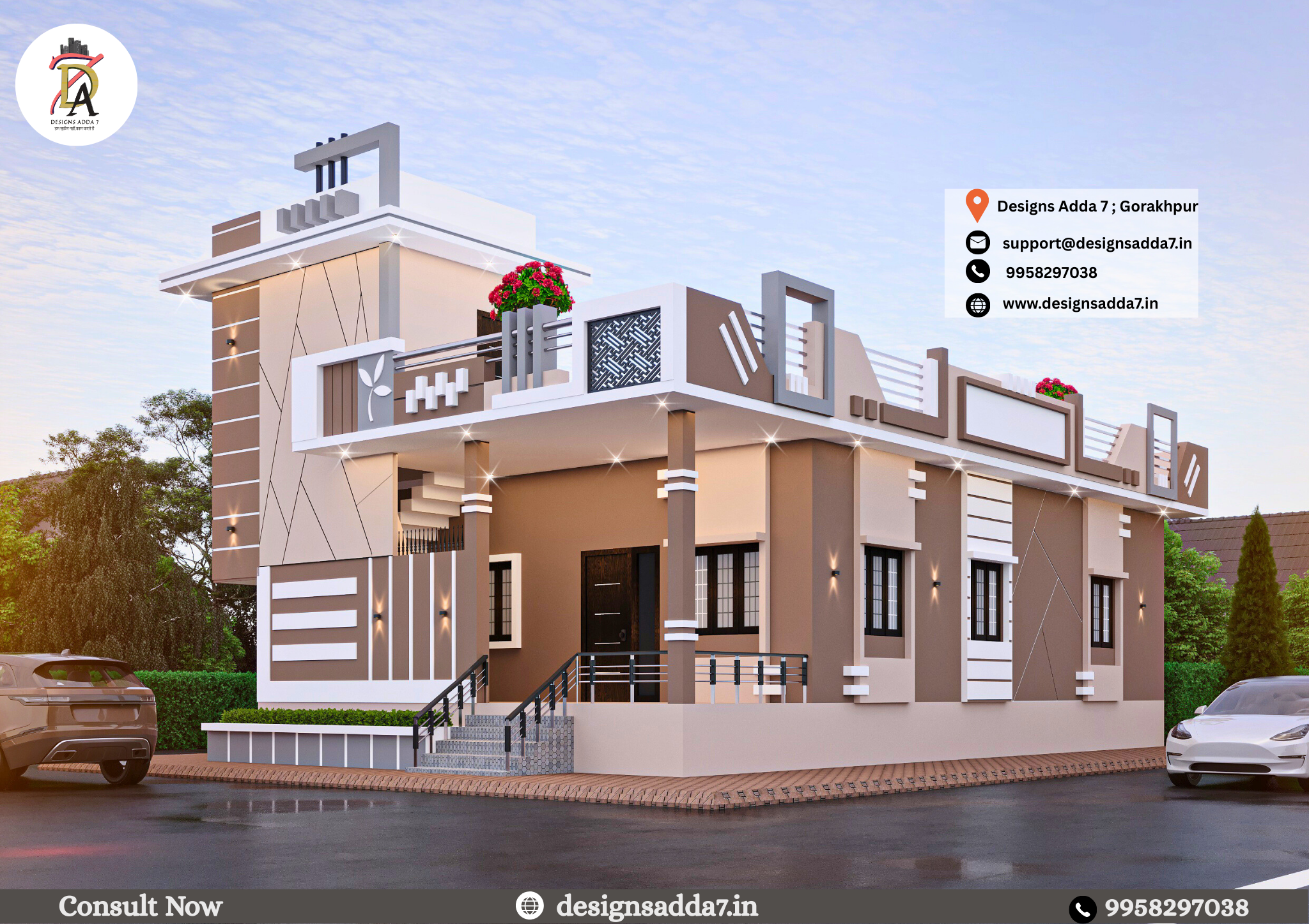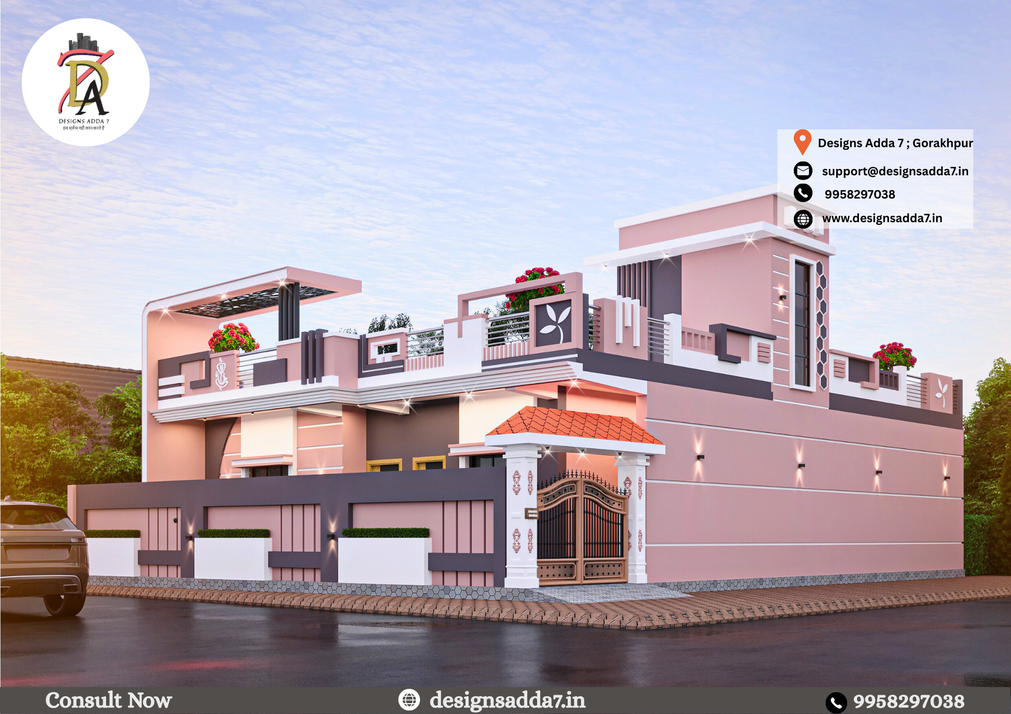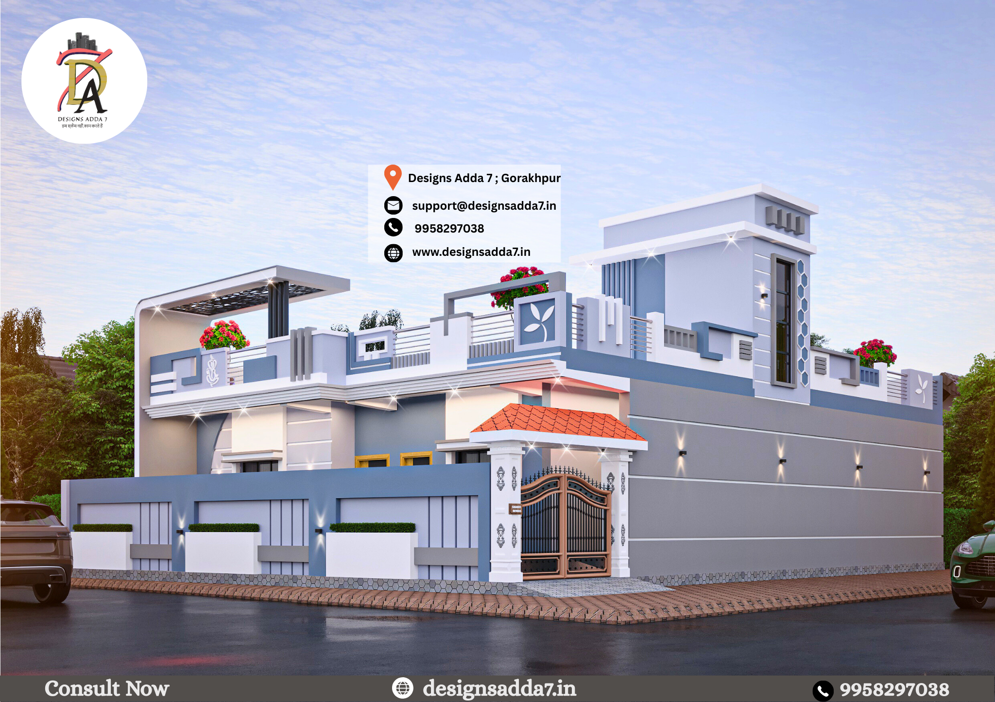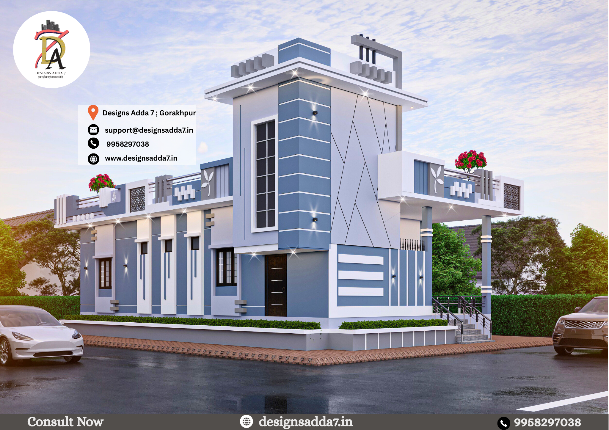 Our G+1 Gorakhpur corner elevation project is designed to impress! With a striking façade, modern materials, and a thoughtfully planned layout, it delivers a bold architectural statement. The corner design maximizes visibility, enhancing aesthetics while ensuring effortless construction. A perfect blend of style and functionality, making it truly a "wow" factor for clients.