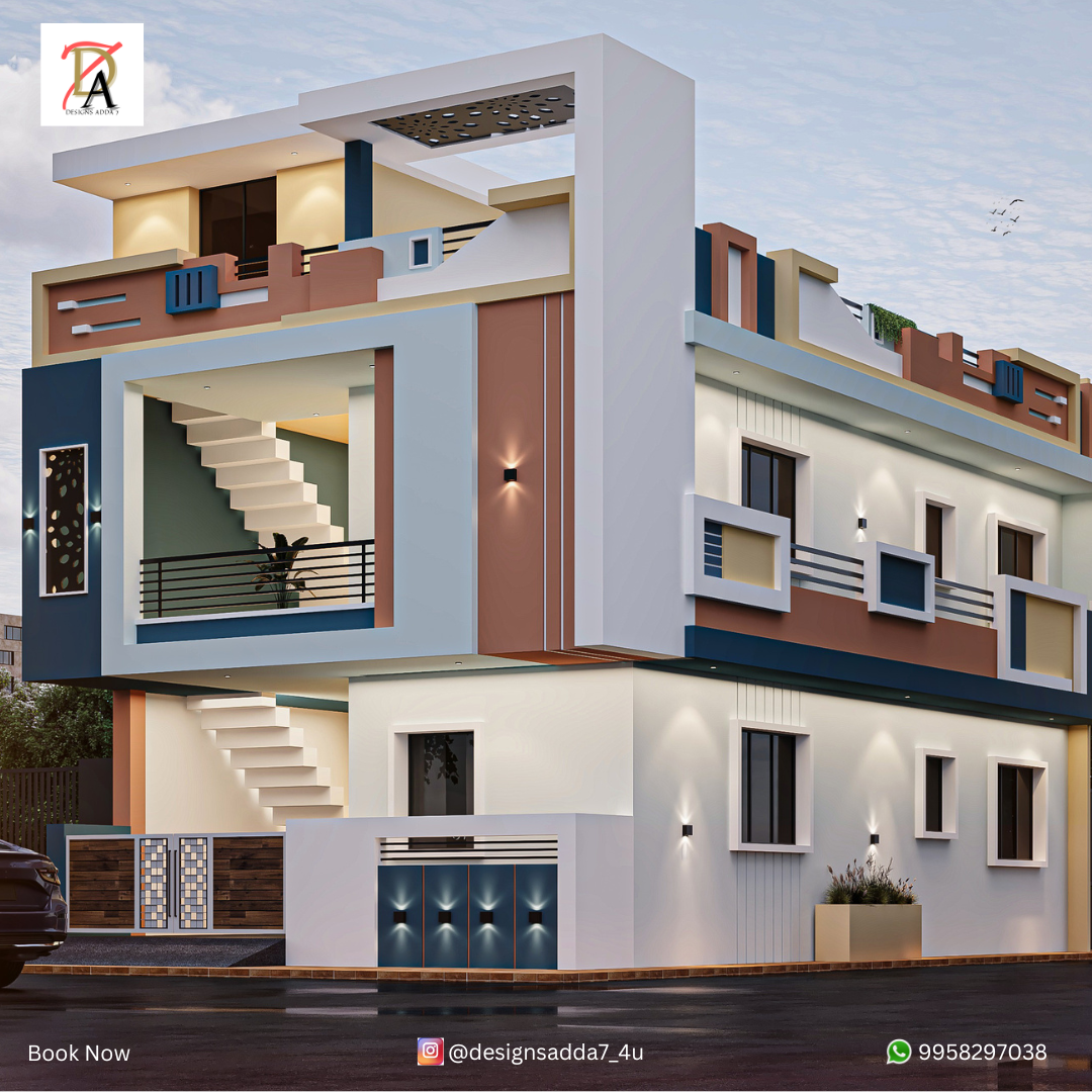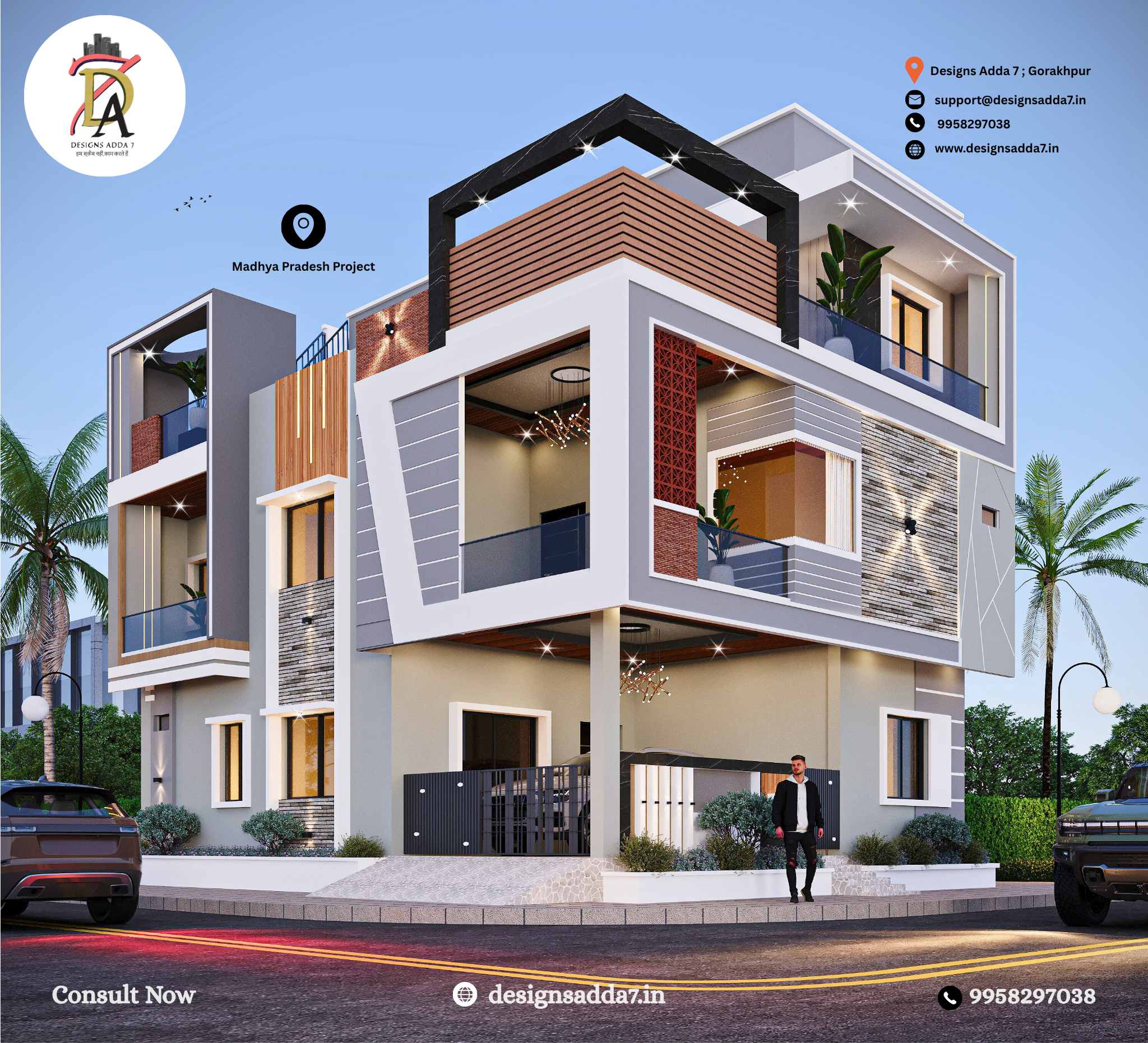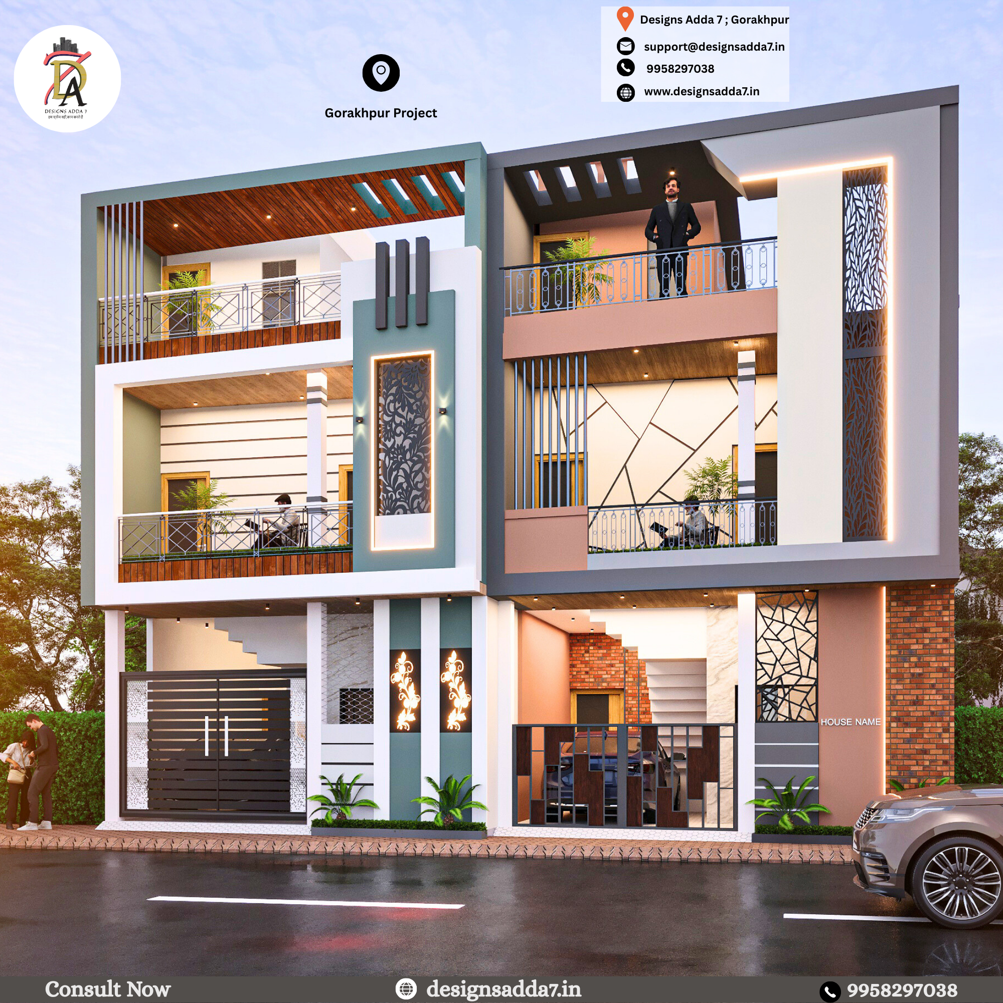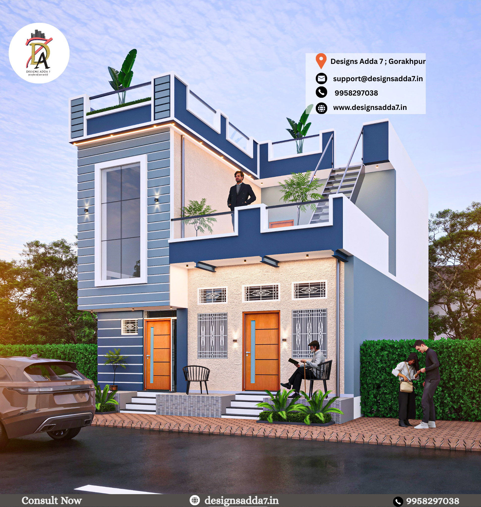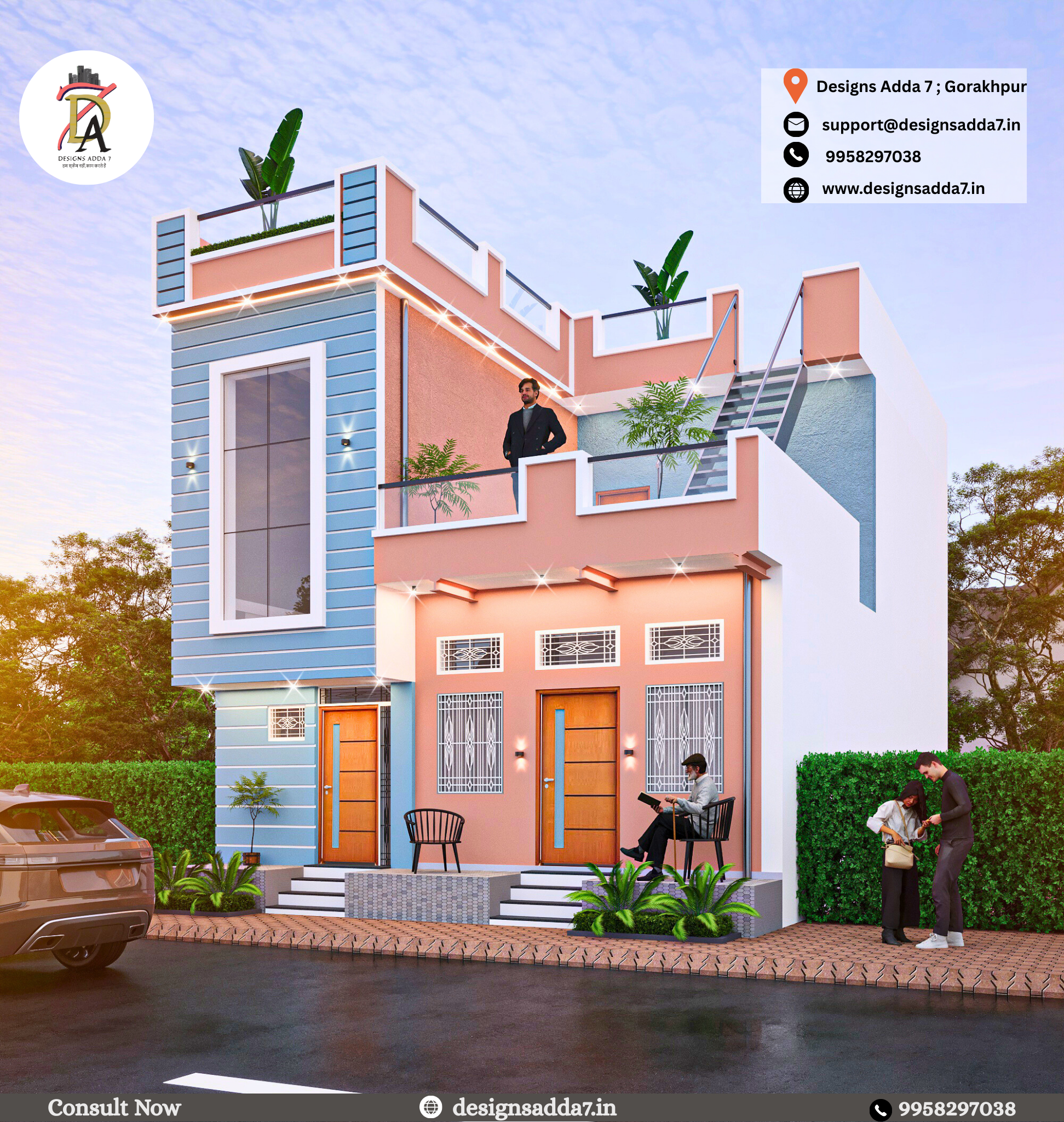 Our G+1 Gorakhpur corner elevation project is designed to impress! With a striking façade, modern materials, and a thoughtfully planned layout, it delivers a bold architectural statement. The corner design maximizes visibility, enhancing aesthetics while ensuring effortless construction. A perfect blend of style and functionality, making it truly a "wow" factor for clients.