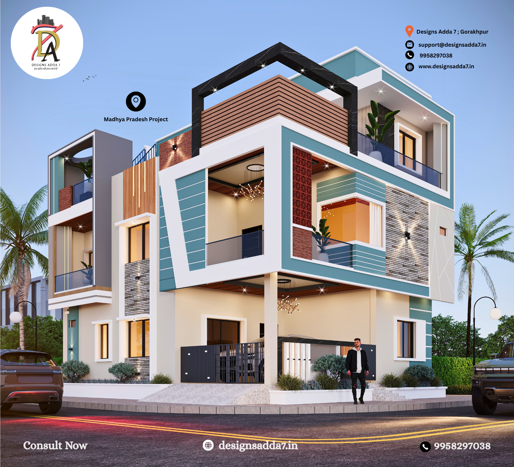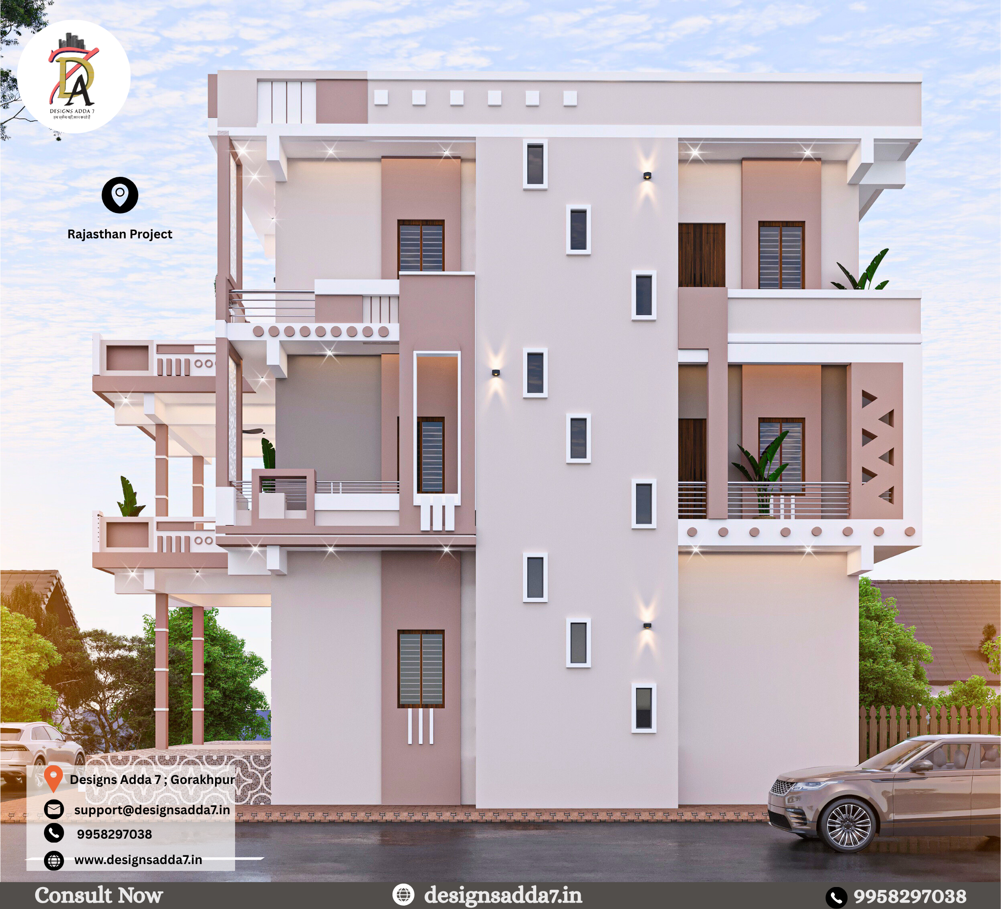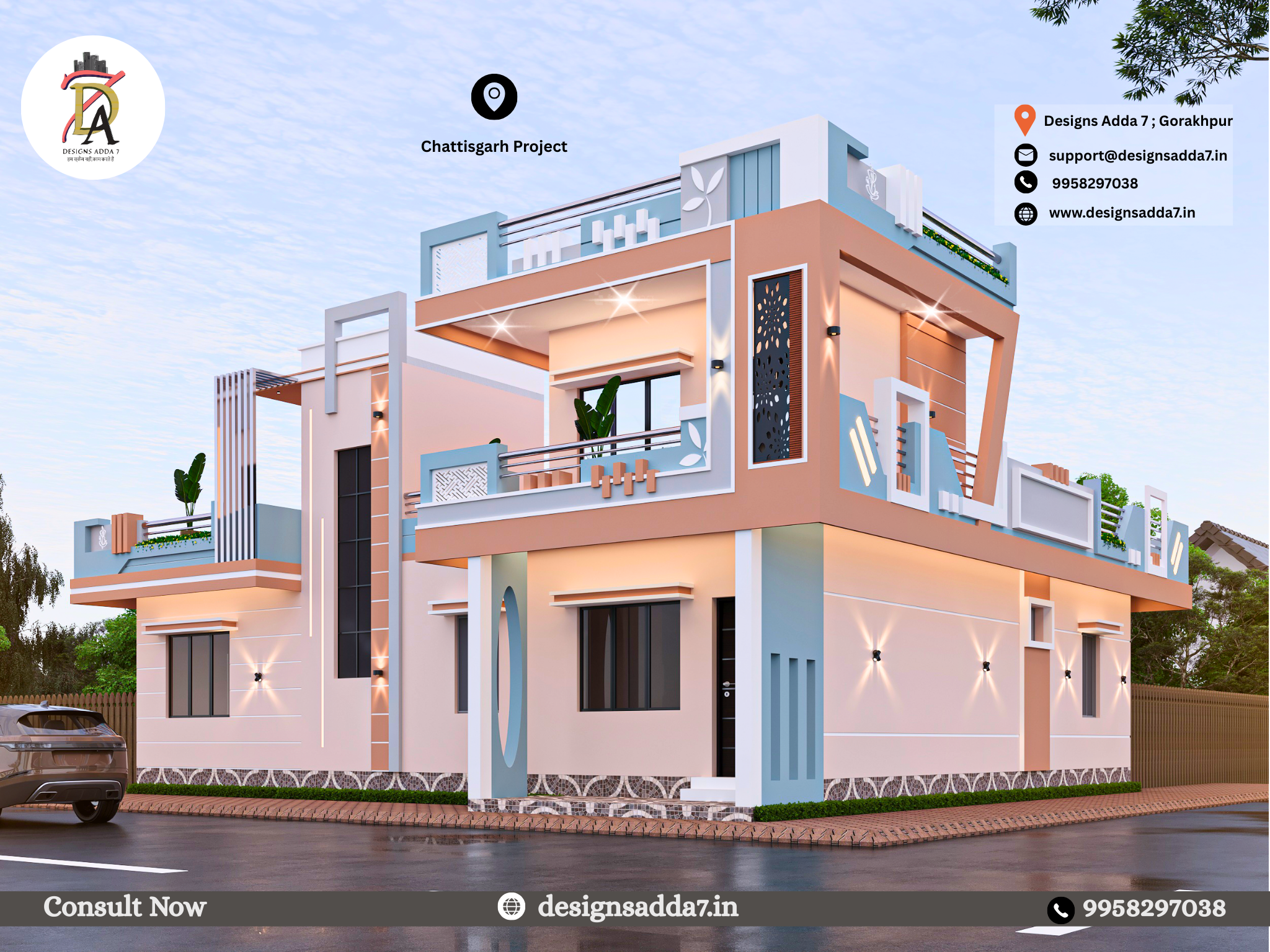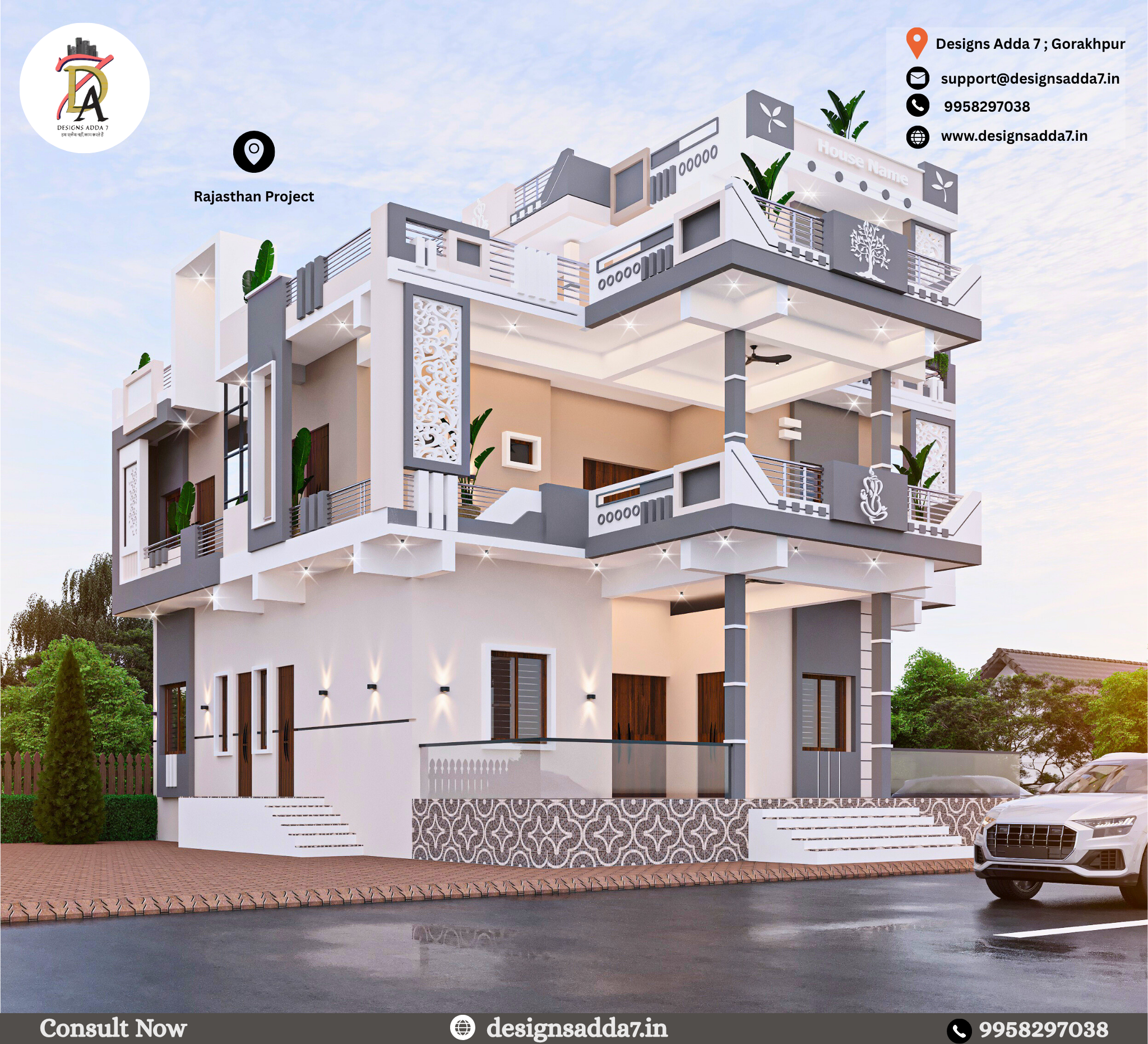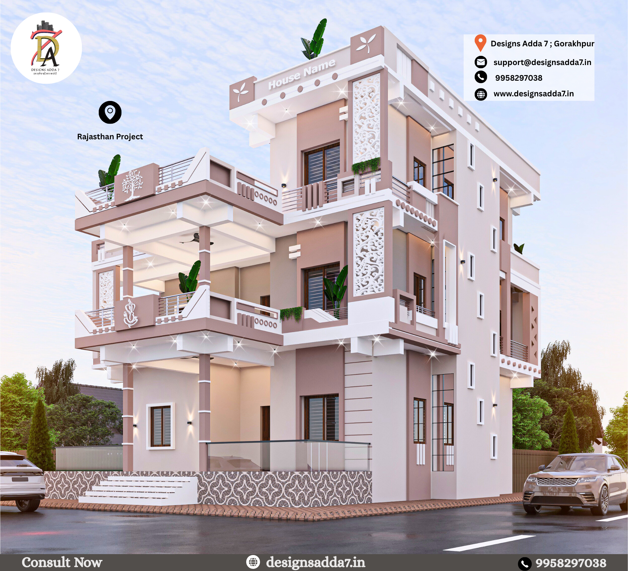 Our G+1 Gorakhpur corner elevation project is designed to impress! With a striking façade, modern materials, and a thoughtfully planned layout, it delivers a bold architectural statement. The corner design maximizes visibility, enhancing aesthetics while ensuring effortless construction. A perfect blend of style and functionality, making it truly a "wow" factor for clients.