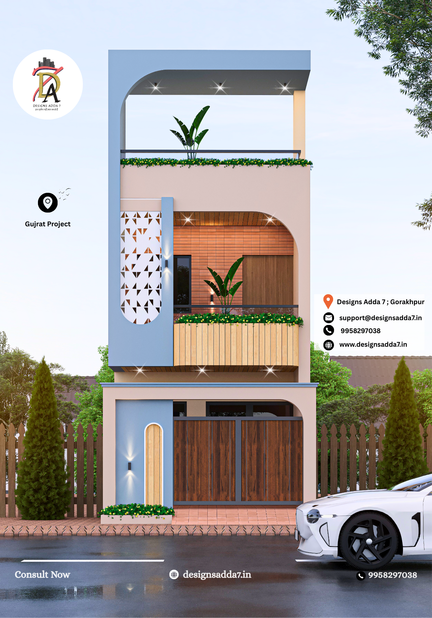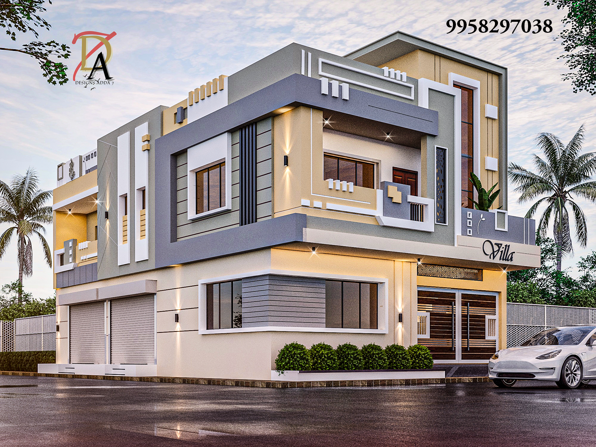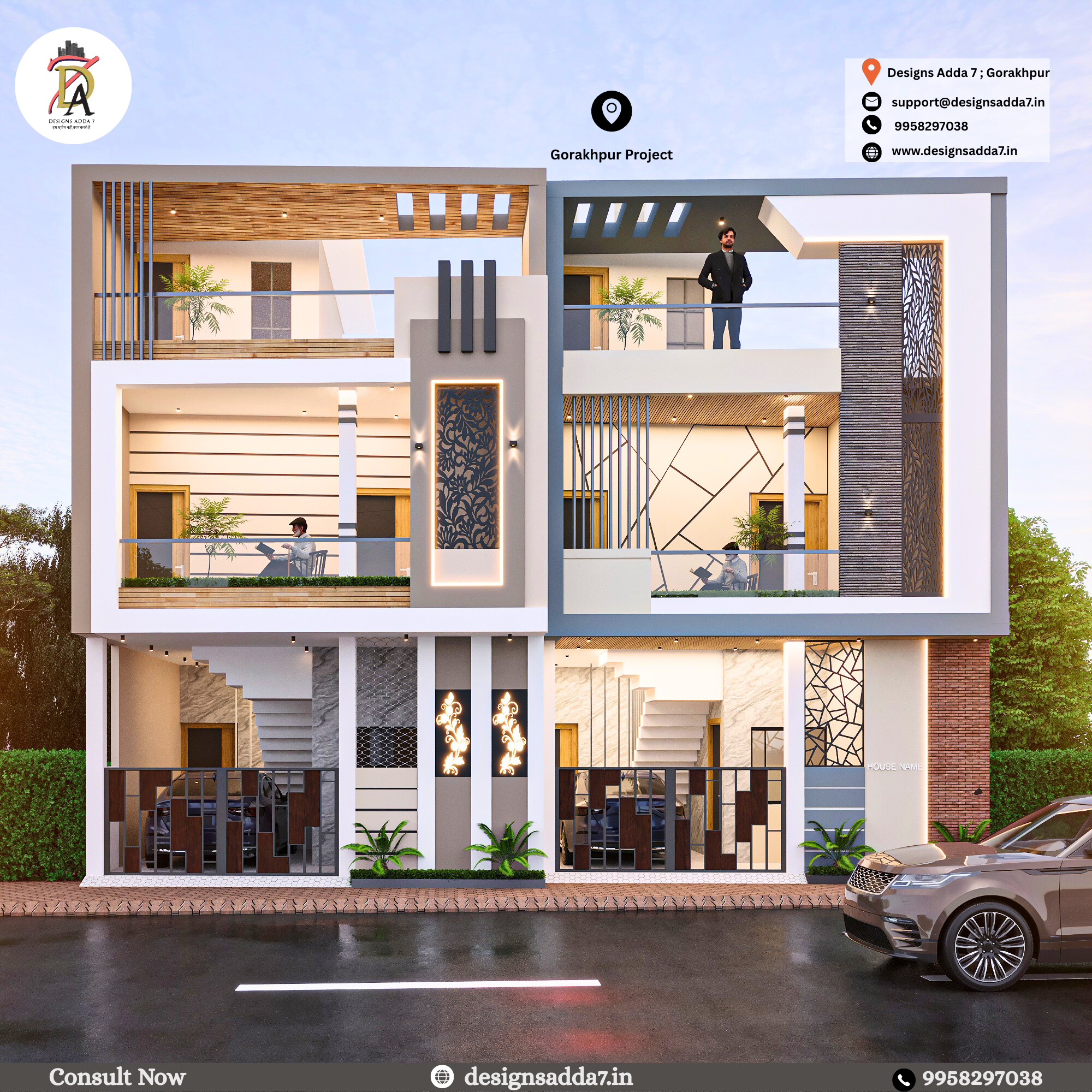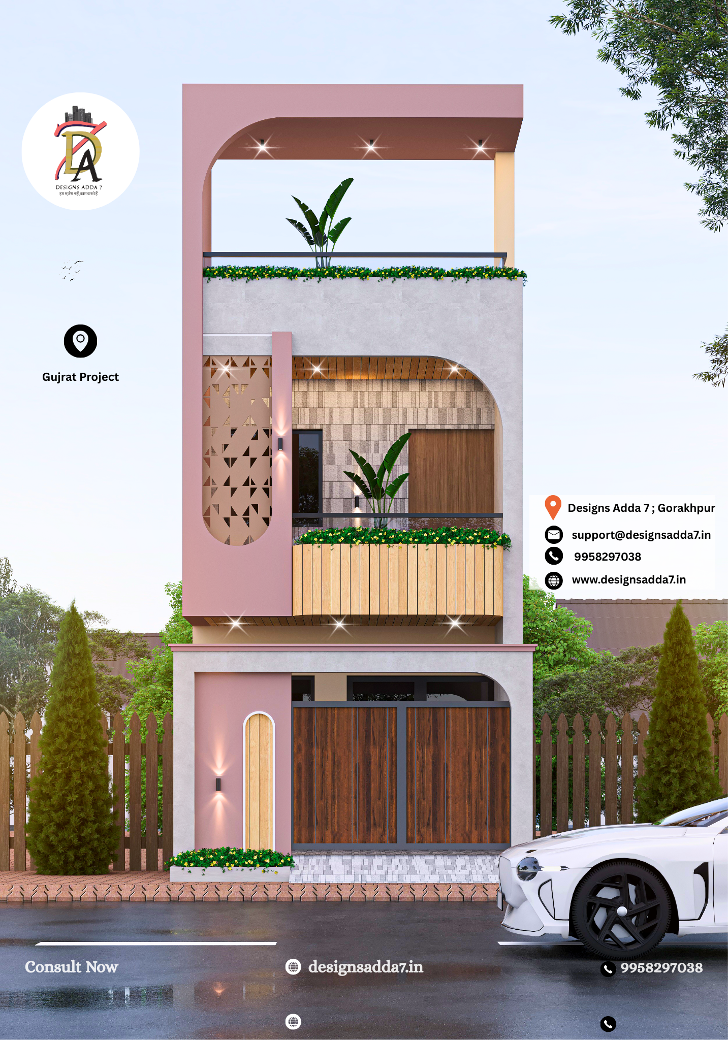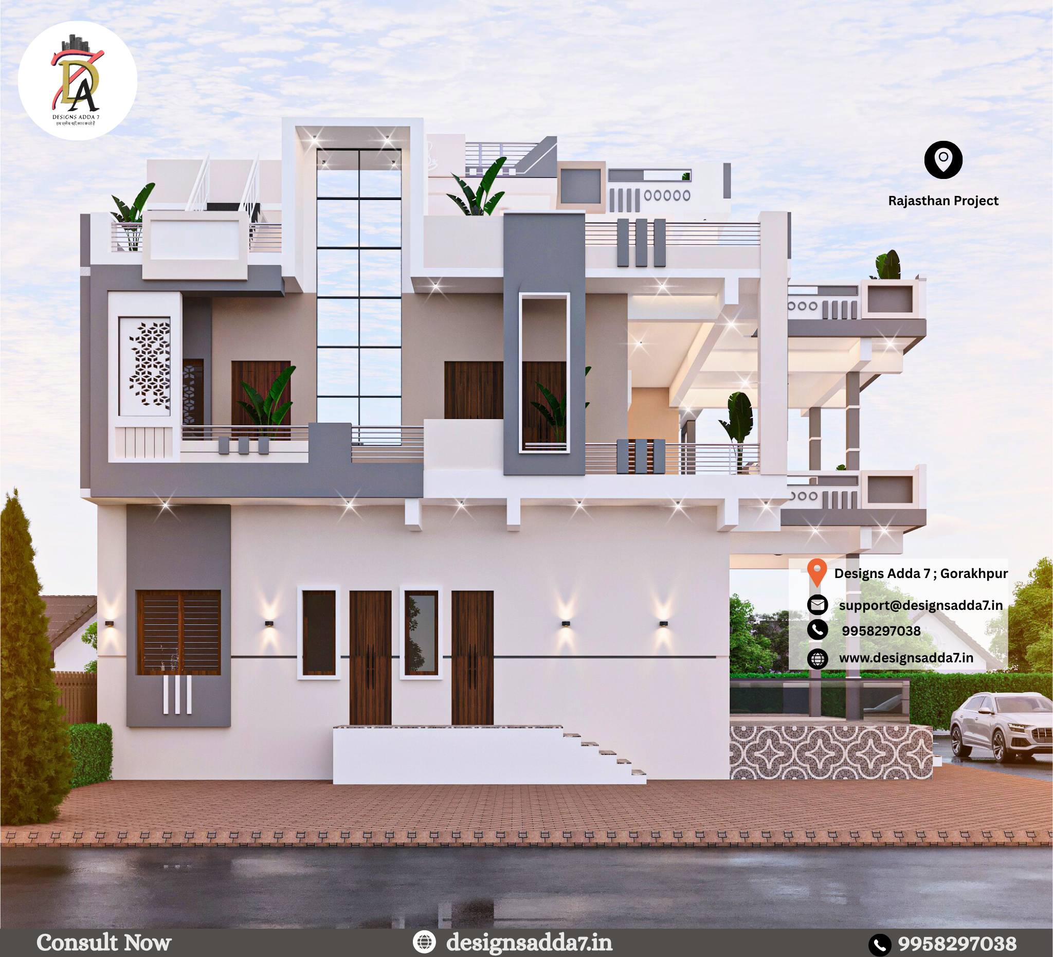 Our G+1 Gorakhpur corner elevation project is designed to impress! With a striking façade, modern materials, and a thoughtfully planned layout, it delivers a bold architectural statement. The corner design maximizes visibility, enhancing aesthetics while ensuring effortless construction. A perfect blend of style and functionality, making it truly a "wow" factor for clients.