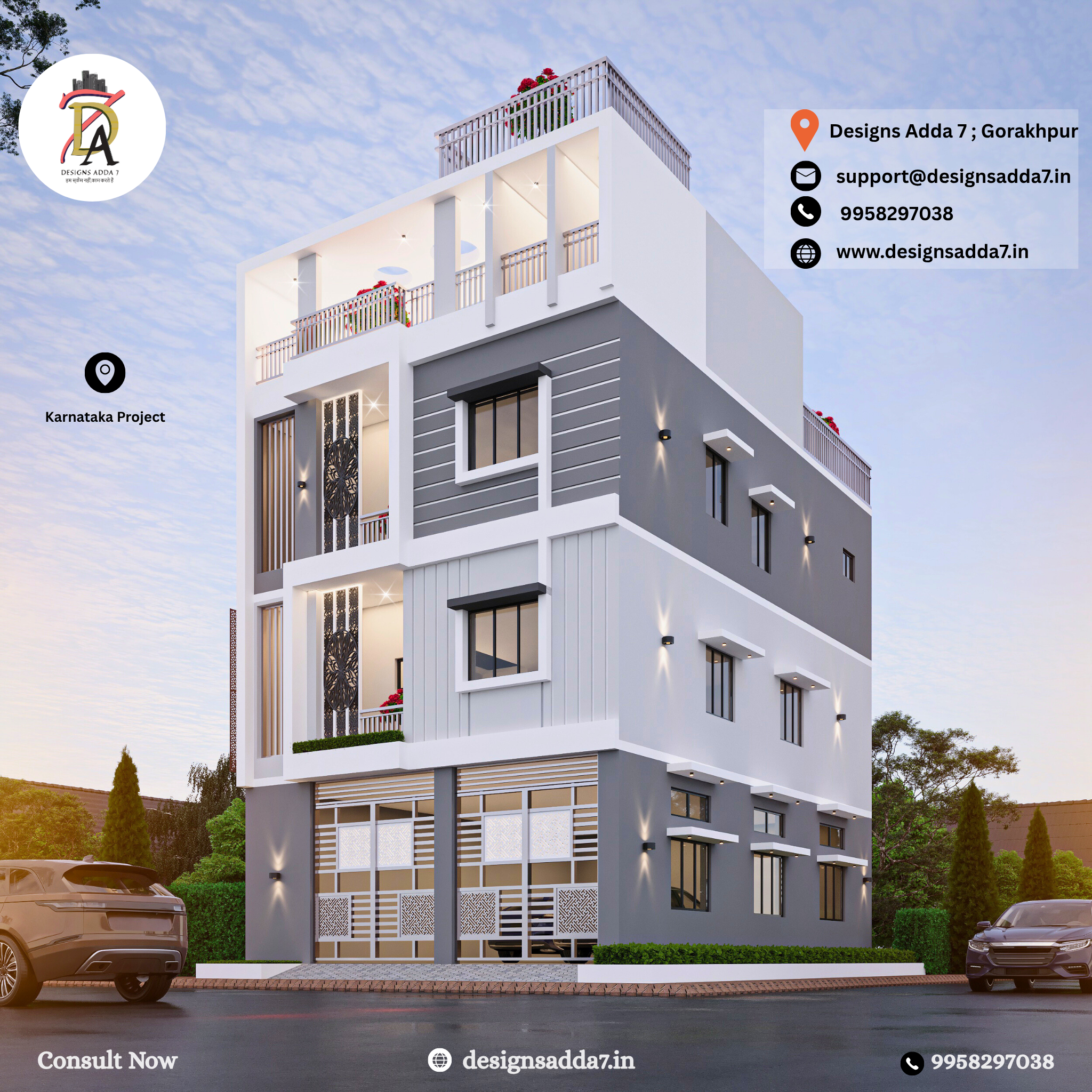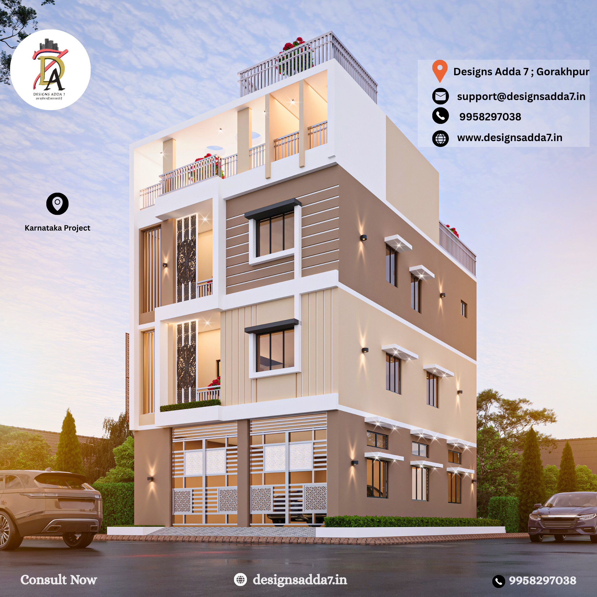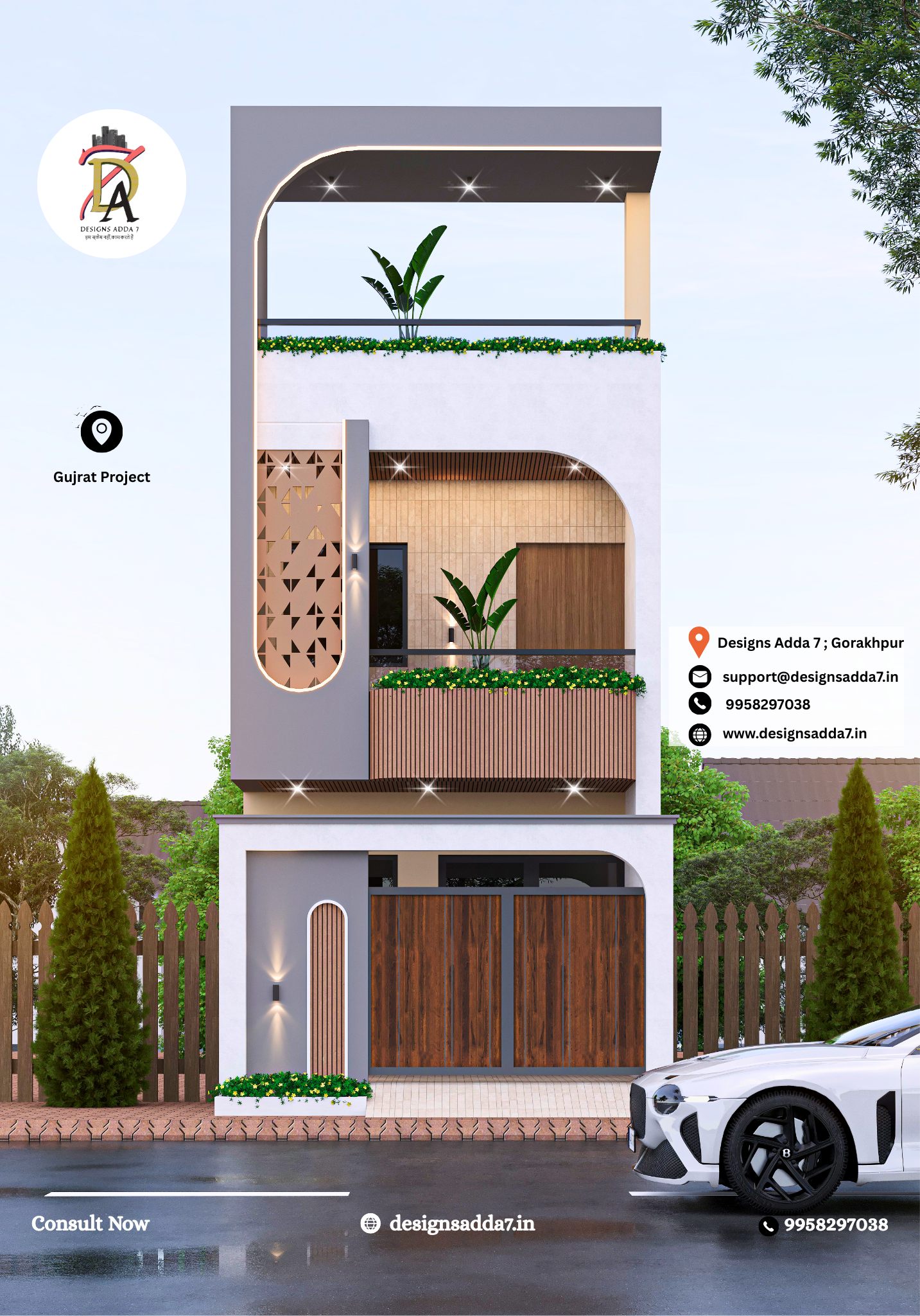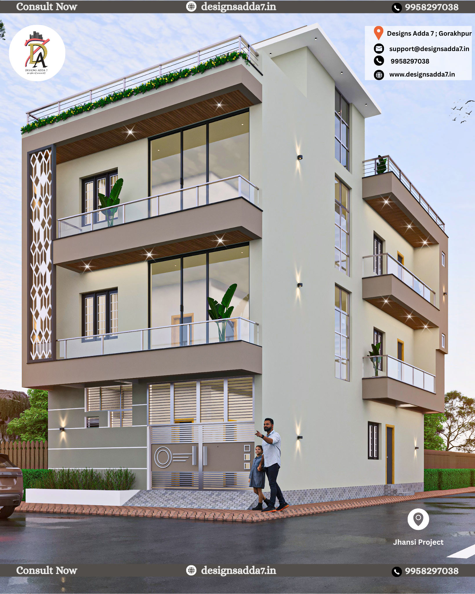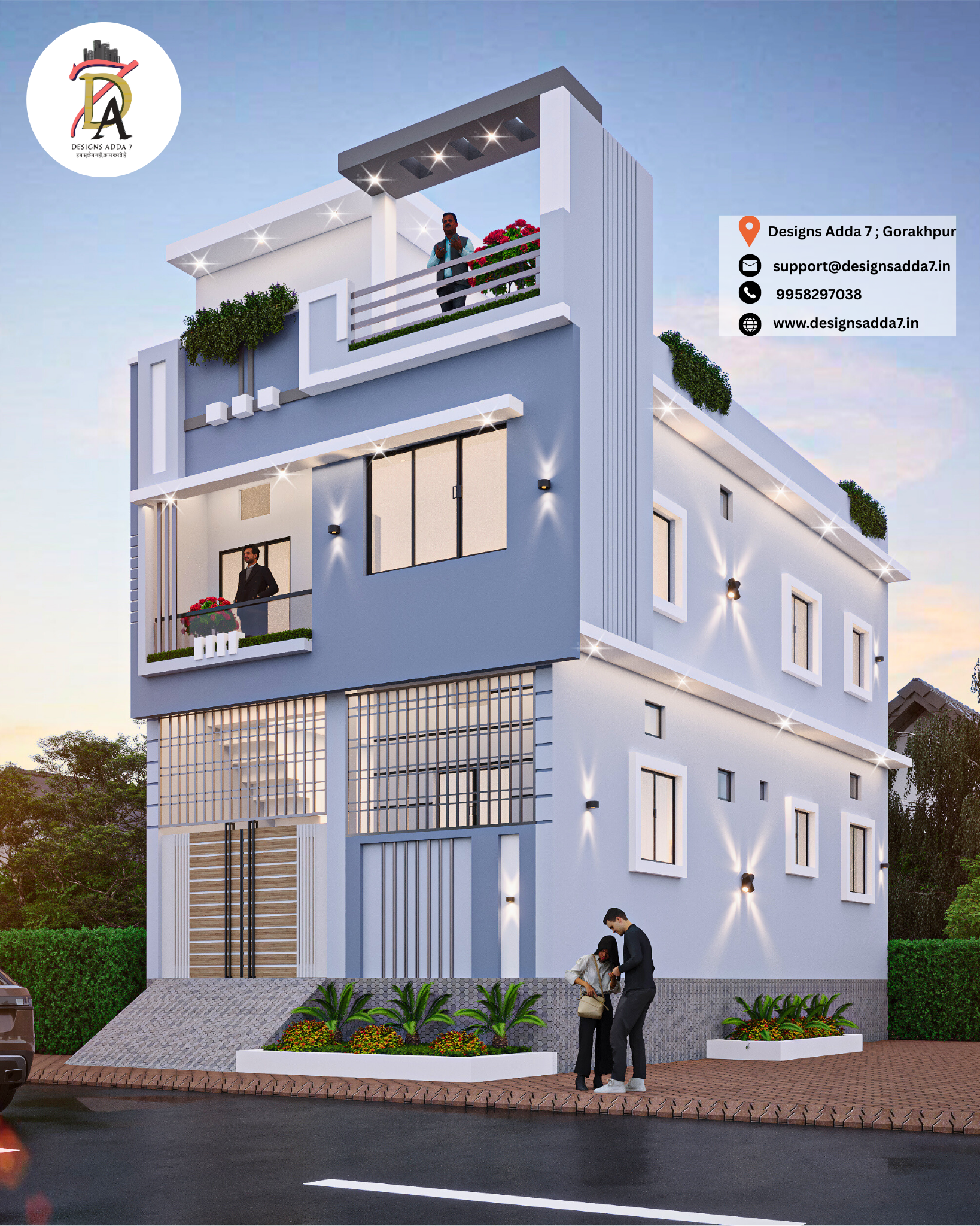 Our G+1 Gorakhpur corner elevation project is designed to impress! With a striking façade, modern materials, and a thoughtfully planned layout, it delivers a bold architectural statement. The corner design maximizes visibility, enhancing aesthetics while ensuring effortless construction. A perfect blend of style and functionality, making it truly a "wow" factor for clients.