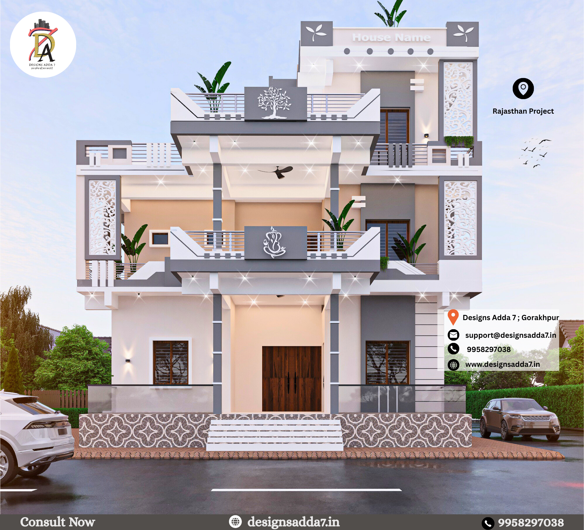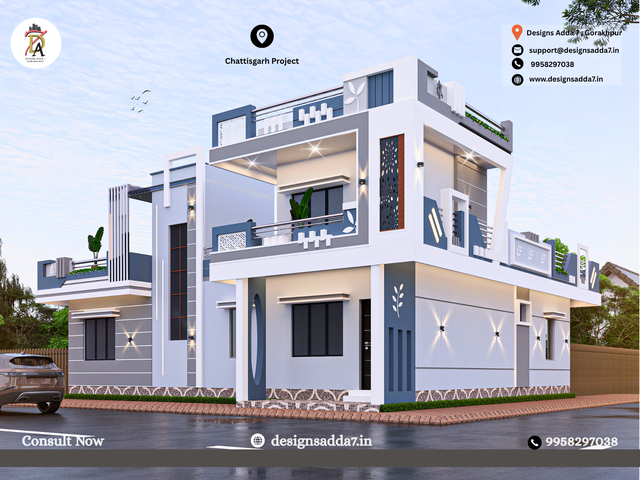 Our Indore G+1 luxury elevation is a masterpiece of modern elegance and expert craftsmanship, designed to exceed all expectations. With premium materials, sophisticated color combinations, and meticulous detailing, this elevation balances style, functionality, and effortless construction. Showcasing our expertise in architectural design, it delivers a striking presence while ensuring a seamless, high-end finish.